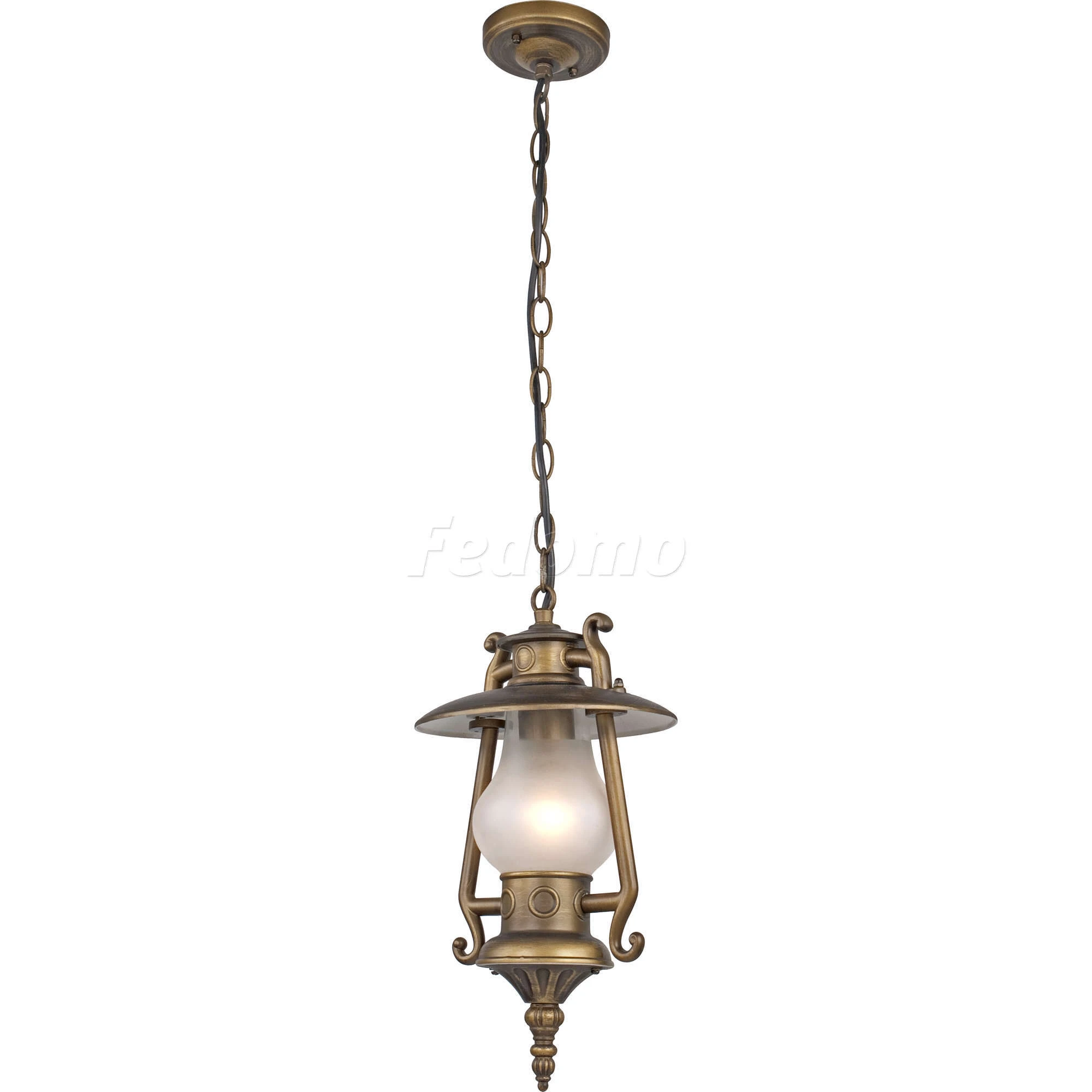 Лампы 1*E27*60W, IP44, excluded. Материал и цвет арматуры металл, цвет золотисто-коричневый. Плафон металл, цвет золотисто-коричневый и матовое стекло.