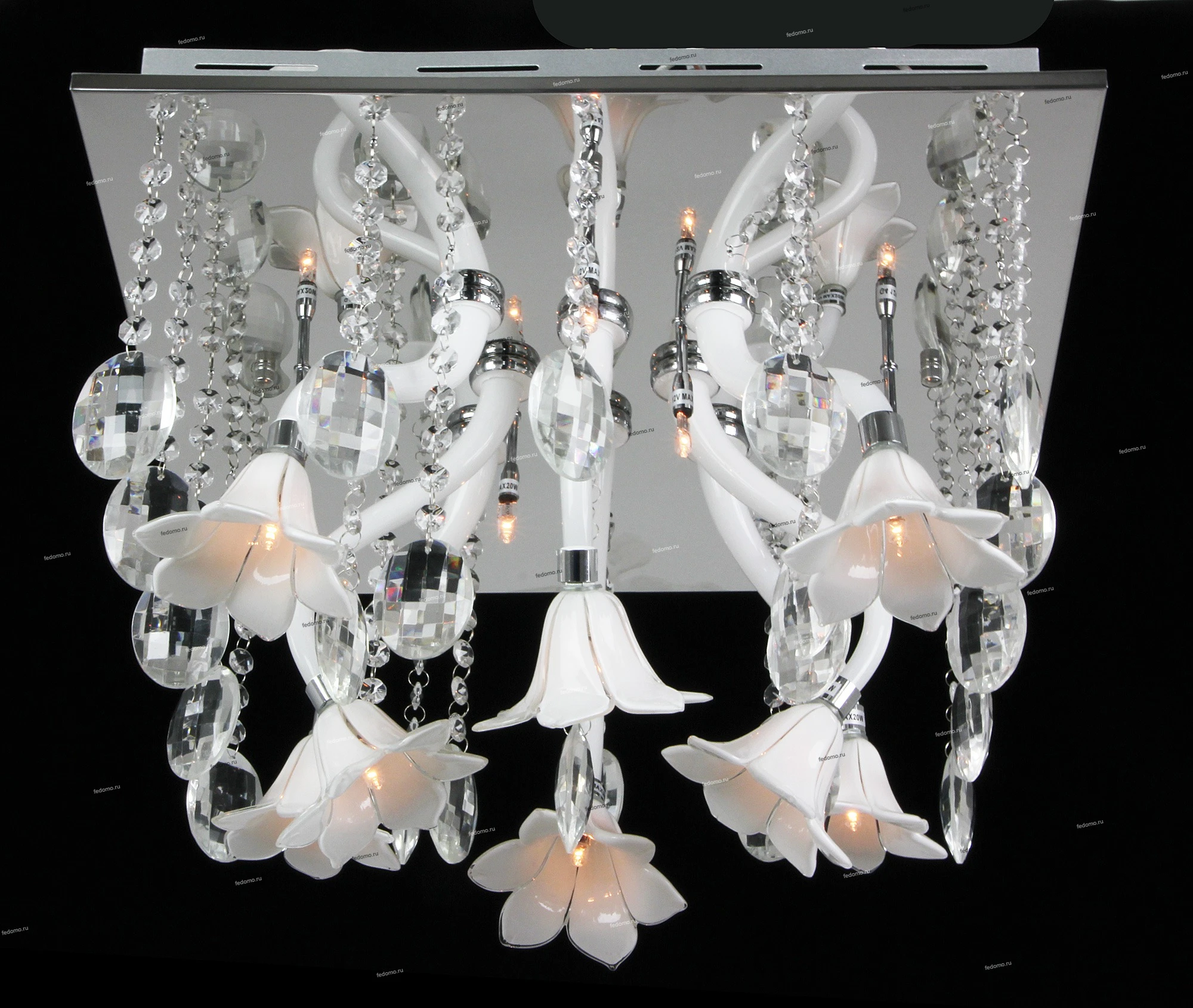 Люстра оснащена пультом дистанционного управления. Пульт позволяет управлять люстрой в трех режимах (включены все плафоны, выключена нижняя группа лампочек - 8 шт. и включена верхняя группа лампочек - 6 шт.).