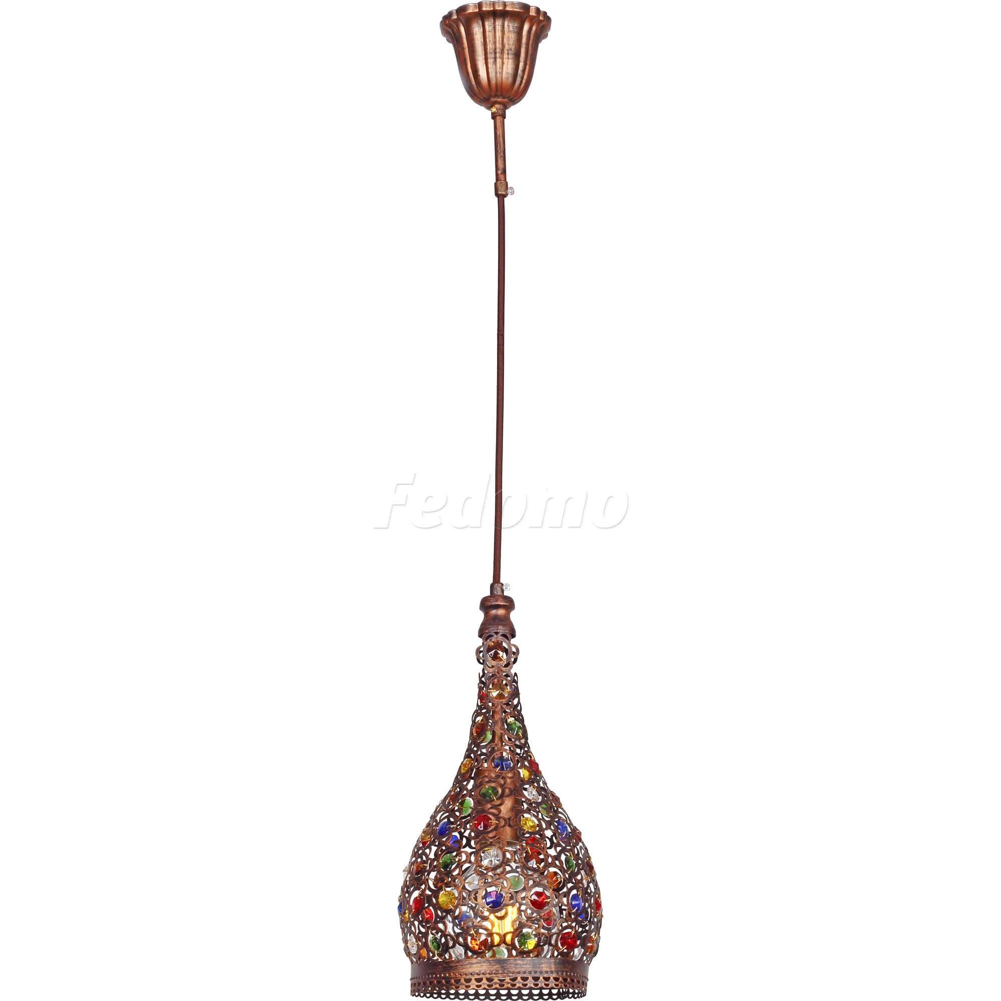 Лампы 1*E27*40W, excluded. Металл окрашен в коричневый цвет, цветной хрусталь. Материал и цвет арматуры металл, цвет коричневый. Декор стекло разноцветное.