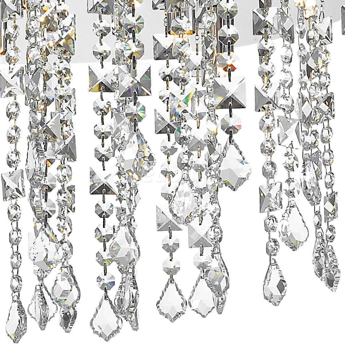 Лампы 12*G9*40W, included. Прозрачный хрусталь, металл цвета хром, хрусталь высшего качества. Материал и цвет арматуры металл, цвет хром. Плафон прозрачный хрусталь. Цвет хрусталя прозрачный. Декор прозрачный хрусталь.