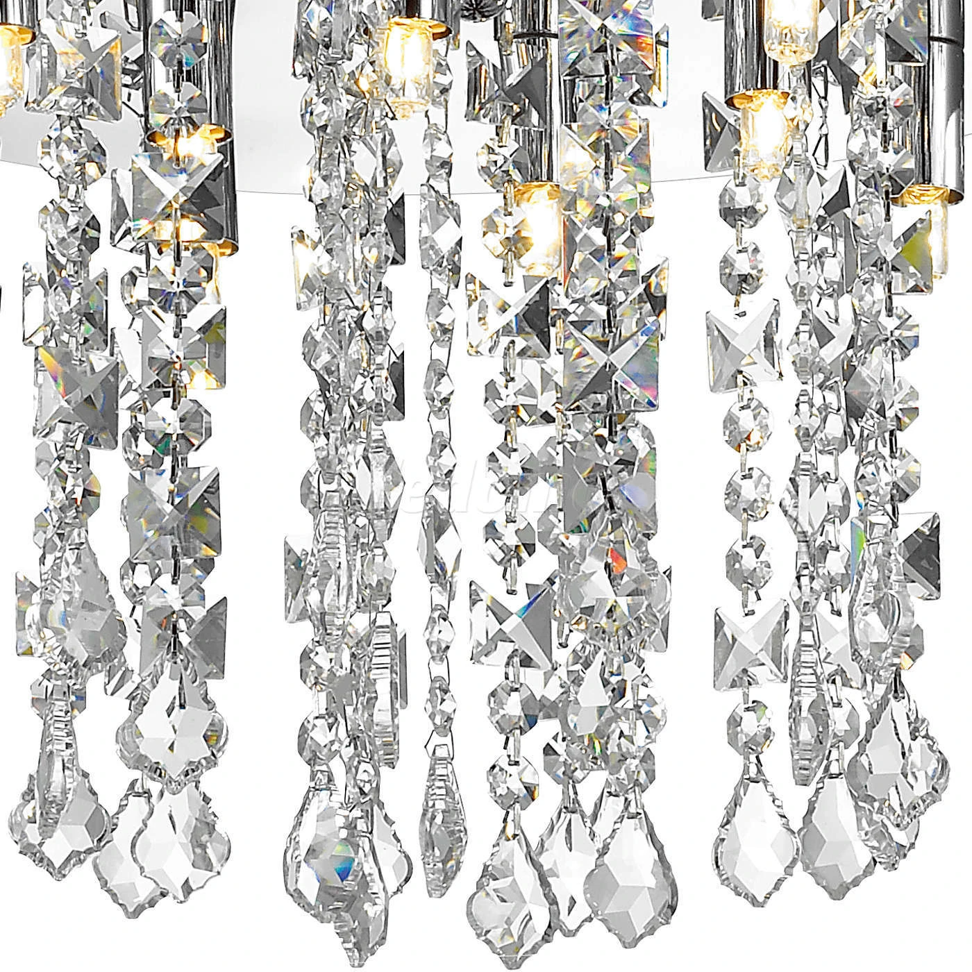 Лампы 8*G9*40W, included. Прозрачный хрусталь, металл цвета хром, хрусталь высшего качества. Материал и цвет арматуры металл, цвет хром. Плафон прозрачный хрусталь. Цвет хрусталя прозрачный. Декор прозрачный хрусталь.