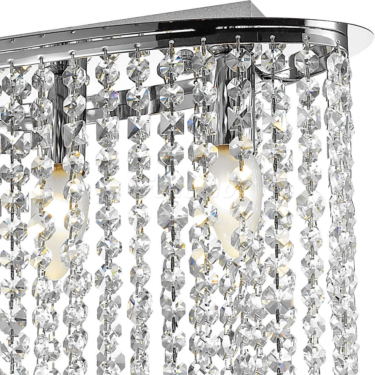 Лампы 3*E14*40W, excluded. Прозрачный хрусталь, металл цвета хром, хрусталь высшего качества. Материал и цвет арматуры металл, цвет хром. Плафон прозрачный хрусталь. Цвет хрусталя прозрачный. Декор прозрачный хрусталь.