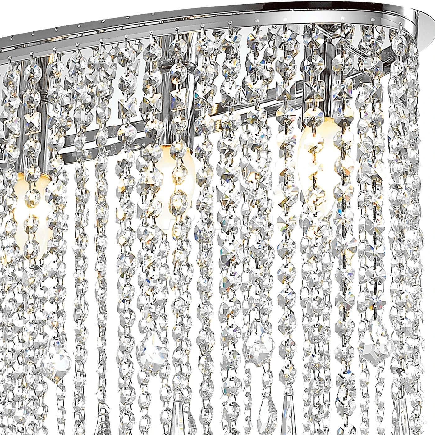 Лампы 5*E14*40W, excluded. Прозрачный хрусталь, металл цвета хром, хрусталь высшего качества. Материал и цвет арматуры металл, цвет хром. Плафон прозрачный хрусталь. Цвет хрусталя прозрачный. Декор прозрачный хрусталь.