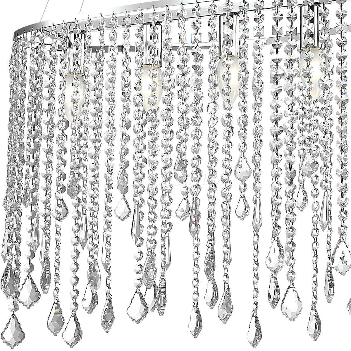 Лампы 5*E14*40W, excluded. Прозрачный хрусталь, металл цвета хром, хрусталь высшего качества. Материал и цвет арматуры металл, цвет хром. Плафон прозрачный хрусталь. Цвет хрусталя прозрачный. Декор прозрачный хрусталь.