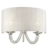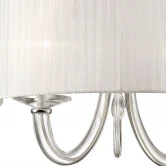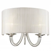 Лампы 2*E14*40W, excluded. Металл хром, выдувное стекло, хрусталь, белая органза. Материал и цвет арматуры металл, цвет хром. Плафон белая ткань. Цвет хрусталя прозрачный. Декор прозрачное выдувное стекло, прозрачный хрусталь.