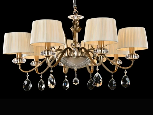 Люстра подвесная 1708/C из серии 1700 от компании Newport регулируется по высоте и устанавливается на металлический крюк. Люстра украшена хрусталем и прекрасно подойдет в качестве источника основного света для гостиной, спальни, кабинета, оформленных в стиле модерн, арт-деко. Основной цвет модели - бежевый, материал арматуры - металл, хрусталь. Люстра имеет 8 абажуров со свечением вверх, материал изготовления - матовая ткань. Модель оснащена цоколем E14 (8xE14), имеет 8 лампочек с общей мощностью 480W и напряжением 220V. Светильник поддерживает подключение диммера. Габариты: высота - 450 мм, диаметр - 850 мм, длина подвеса - 1000 мм. Лампочки в комплект не входят. Лучшая цена и условия доставки на Newport 1708/C в интернет-магазине Fedomo.ru.