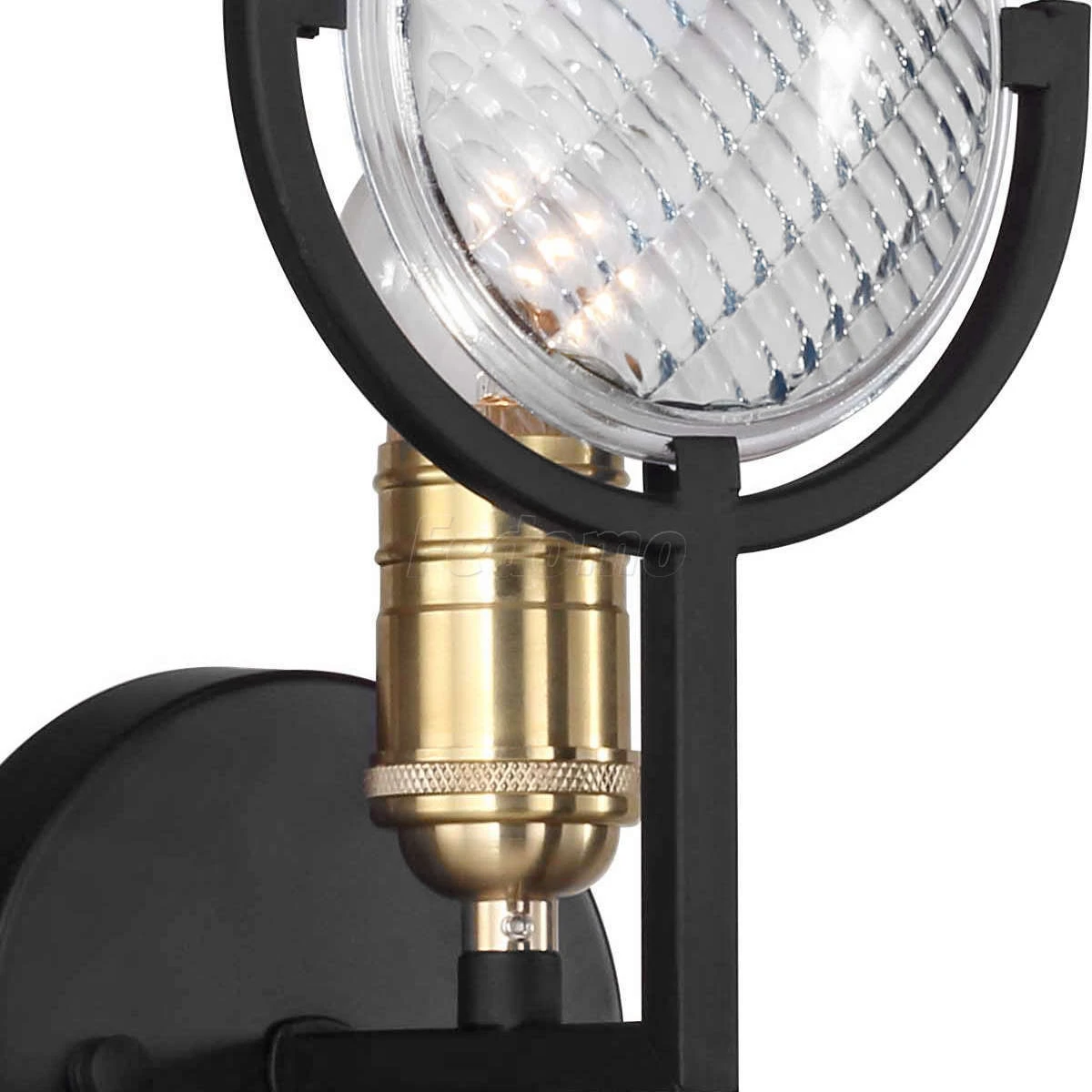 Лампы 1*E27*40W, excluded. Металл черного цвета, декоративные цоколи - золото, стекло в стиле автомобильных фар. Материал и цвет арматуры металл, цвет черный и золотой. Декор узорное стекло.