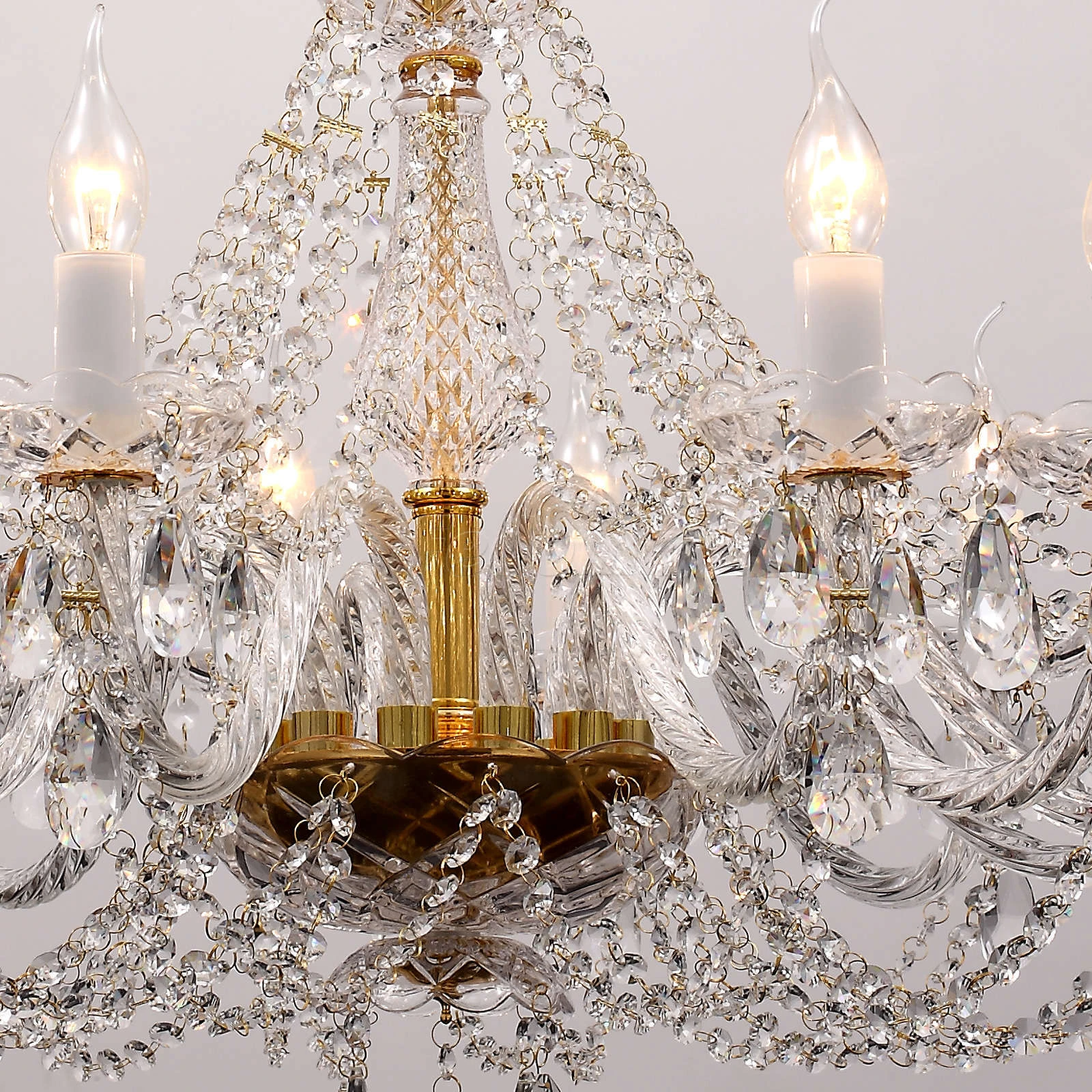 Люстра подвесная хрустальная 1736-12P из серии Simone от компании Favourite регулируется по высоте и устанавливается на металлический крюк. Классическая люстра в виде подсвечника украшена декоративными элементами из прозрачного стекла и хрусталя и прекрасно подойдет в качестве источника основного света для гостиной, спальни, оформленных в стиле барокко. Основной цвет модели - прозрачный, материал арматуры - металл. Модель оснащена цоколем E14, имеет 12 лампочек с общей мощностью 480W и напряжением 220V. Светильник поддерживает подключение диммера. Габариты: диаметр - 820 мм. Лампочки в комплект не входят. Лучшая цена и условия доставки на Favourite 1736-12P в интернет-магазине Fedomo.ru.