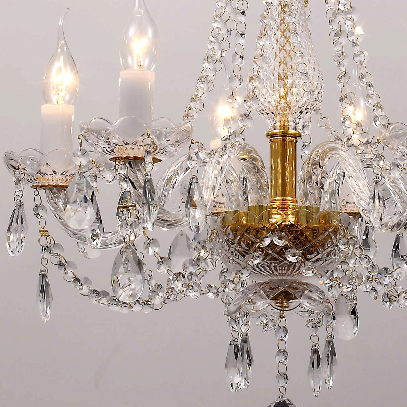 Люстра подвесная хрустальная 1736-6P из серии Simone от компании Favourite регулируется по высоте и устанавливается на металлический крюк. Классическая люстра в виде подсвечника украшена декоративными элементами из прозрачного стекла и хрусталя и прекрасно подойдет в качестве источника основного света для гостиной, спальни, оформленных в стиле барокко. Основной цвет модели - прозрачный, материал арматуры - металл. Модель оснащена цоколем E14, имеет 6 лампочек с общей мощностью 240W и напряжением 220V. Светильник поддерживает подключение диммера. Габариты: диаметр - 520 мм. Лампочки в комплект не входят. Лучшая цена и условия доставки на Favourite 1736-6P в интернет-магазине Fedomo.ru.
