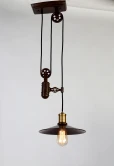Лампы 1*E27*60W, excluded. Арматура темно-коричневого цвета, механизм лебедки для изменения высоты подвеса. Материал и цвет арматуры металл, цвет кофейный и античная бронза. Плафон металл, цвет кофейный.