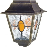 Лампы 1*E27*100W, IP44, excluded. Материал и цвет арматуры металл, цвет черный с золотой патиной. Плафон металл, цвет черный с золотой патиной, прозрачное стекло и янтарное стекло.