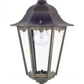 Лампы 1*E27*100W, IP44, excluded. Материал и цвет арматуры металл, цвет черный с золотой патиной. Плафон металл, цвет черный с золотой патиной и прозрачное стекло.