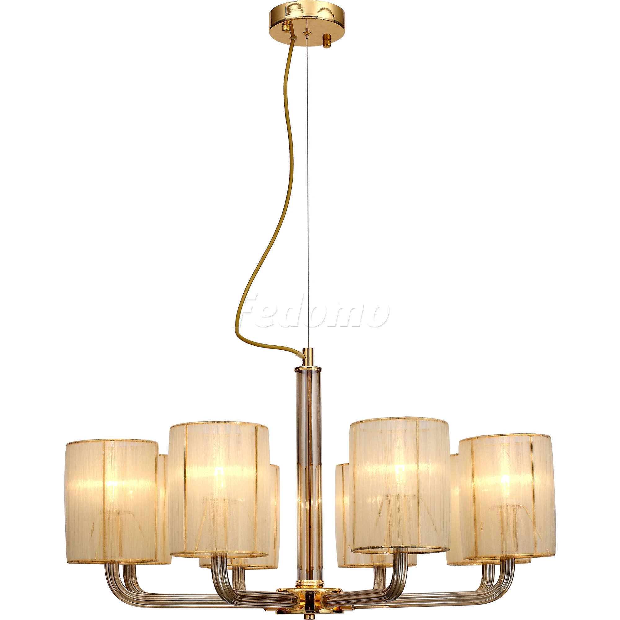 Люстра подвесная 1860-8P из серии Birra от компании Favourite регулируется по высоте и устанавливается на монтажную пластину. Люстра прекрасно подойдет в качестве источника основного света для гостиной, спальни, кабинета, оформленных в стиле модерн. Основной цвет модели - золото, материал арматуры - металл, стекло. Люстра имеет 8 абажуров со свечением вверх, материал изготовления - органза. Модель оснащена цоколем E14 (8хE14), имеет 8 лампочек с общей мощностью 320W и напряжением 220V. Светильник поддерживает подключение диммера. Габариты: диаметр - 740 мм. Лампочки в комплект не входят. Лучшая цена и условия доставки на Favourite 1860-8P в интернет-магазине Fedomo.ru.