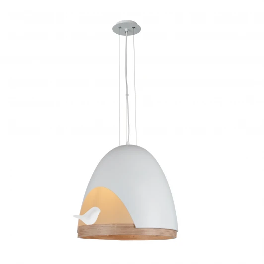 Лампы 1*E27*60W, excluded. Цвет, отделка: каркас из металла белого цвета с деревянным обручем, внутри окрашен в белый цвет. Материал и цвет арматуры металл, цвет белый. Декор деревянный обруч, металлическая белая птица.