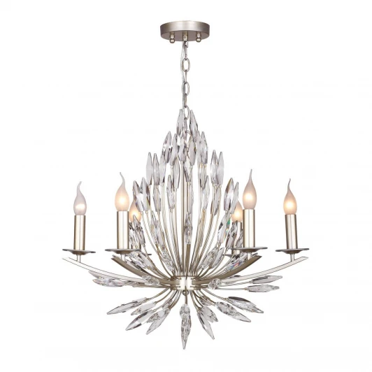 Лампы 6*E14*40W, excluded. Цвет, отделка: арматура в цвете античного серебра, хрусталь высшего качества. Материал и цвет арматуры металл, цвет античное серебро. Цвет хрусталя прозрачный. Декор прозрачный хрусталь.