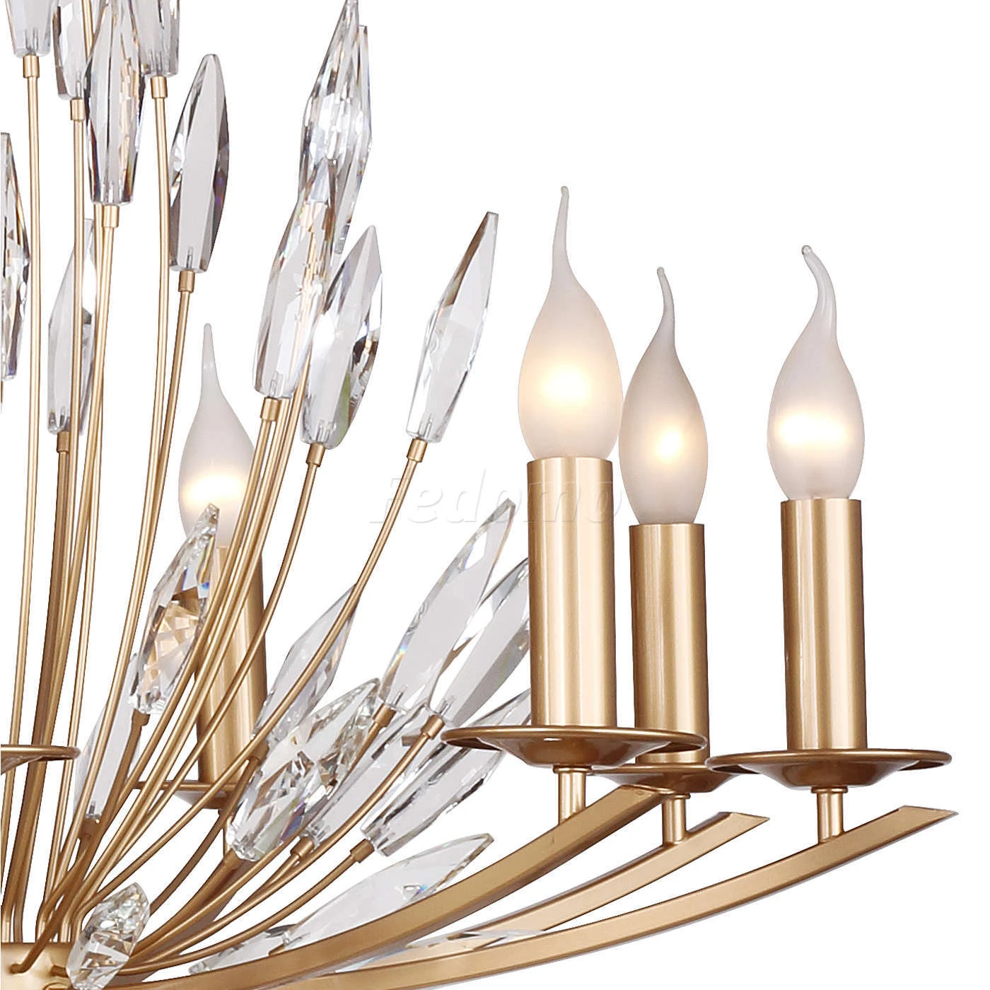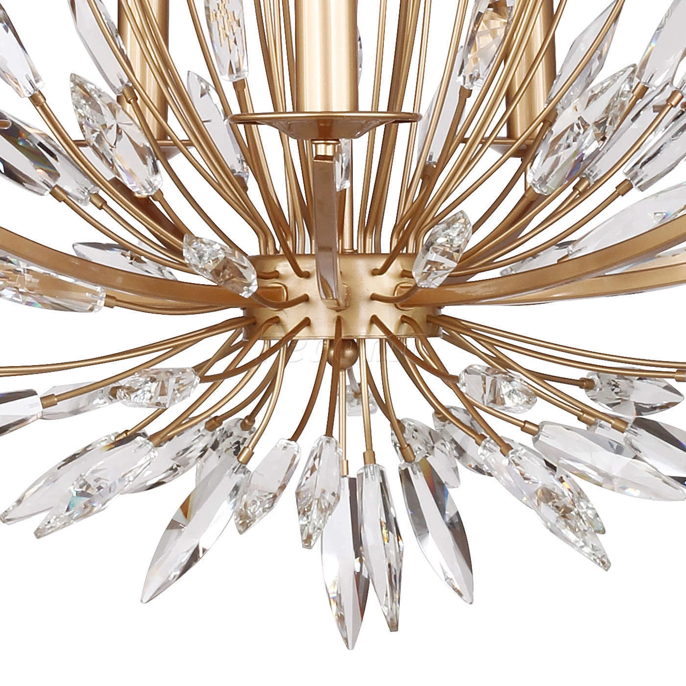 Лампы 9*E14*40W, excluded. Цвет, отделка: арматура в цвете античного золота, хрусталь высшего качества. Материал и цвет арматуры металл, цвет золото. Цвет хрусталя прозрачный. Декор прозрачный хрусталь.