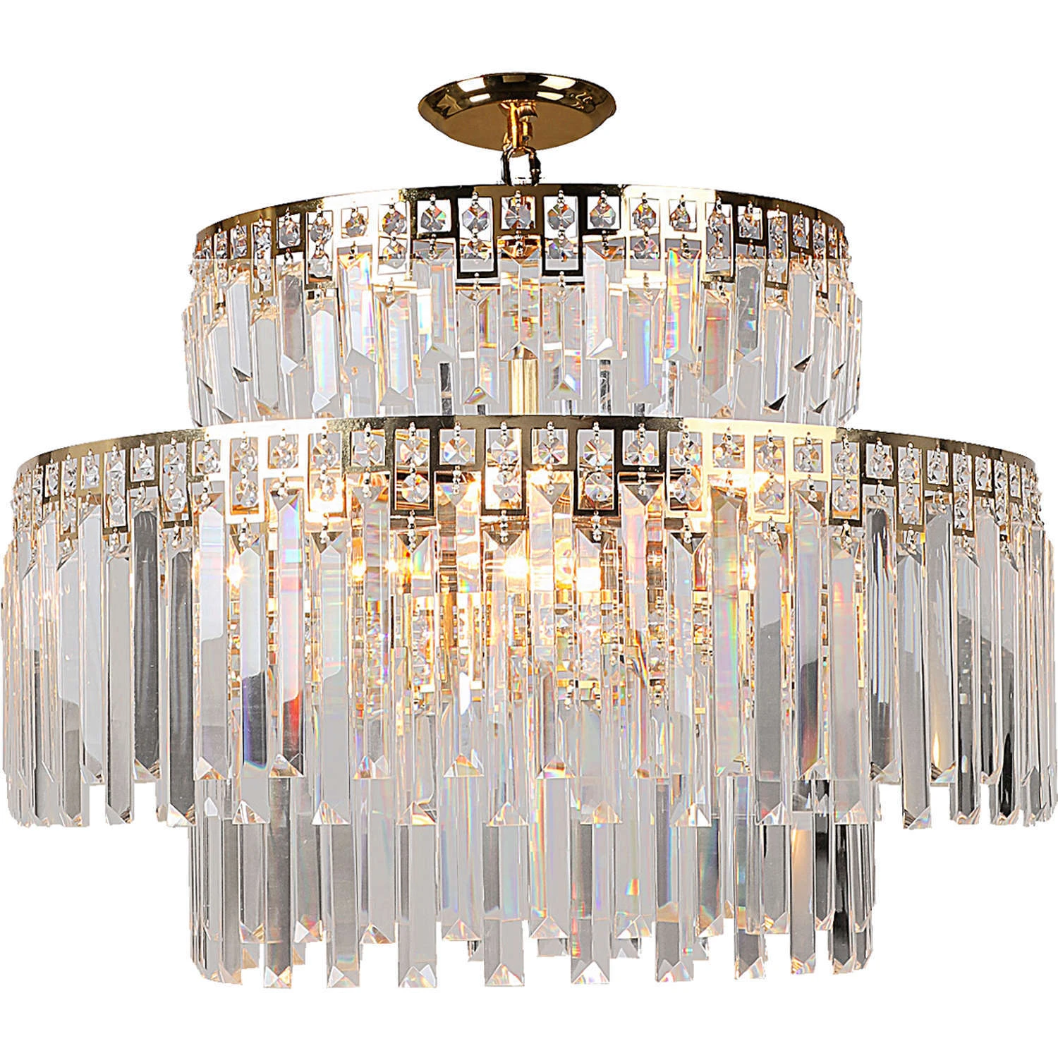 Люстра 2 в 1 потолочная и подвесная хрустальная 1971-9U из серии Salto от компании Favourite регулируется по высоте и устанавливается на монтажную пластину. Классическая люстра украшена декоративными элементами из прозрачного хрусталя и прекрасно подойдет в качестве источника основного света для гостиной, кафе, над обеденным столом, кабинета, оформленных в стиле ар нуво, американский винтаж. Основной цвет модели - золото, материал арматуры - металл. Люстра имеет 1 декоративный плафон со свечением вниз, материал изготовления - прозрачный хрусталь. Модель оснащена цоколем E14, имеет 9 лампочек с общей мощностью 360W и напряжением 220V. Светильник поддерживает подключение диммера. Габариты: диаметр - 610 мм. Лампочки в комплект не входят. Лучшая цена и условия доставки на Favourite 1971-9U в интернет-магазине Fedomo.ru.