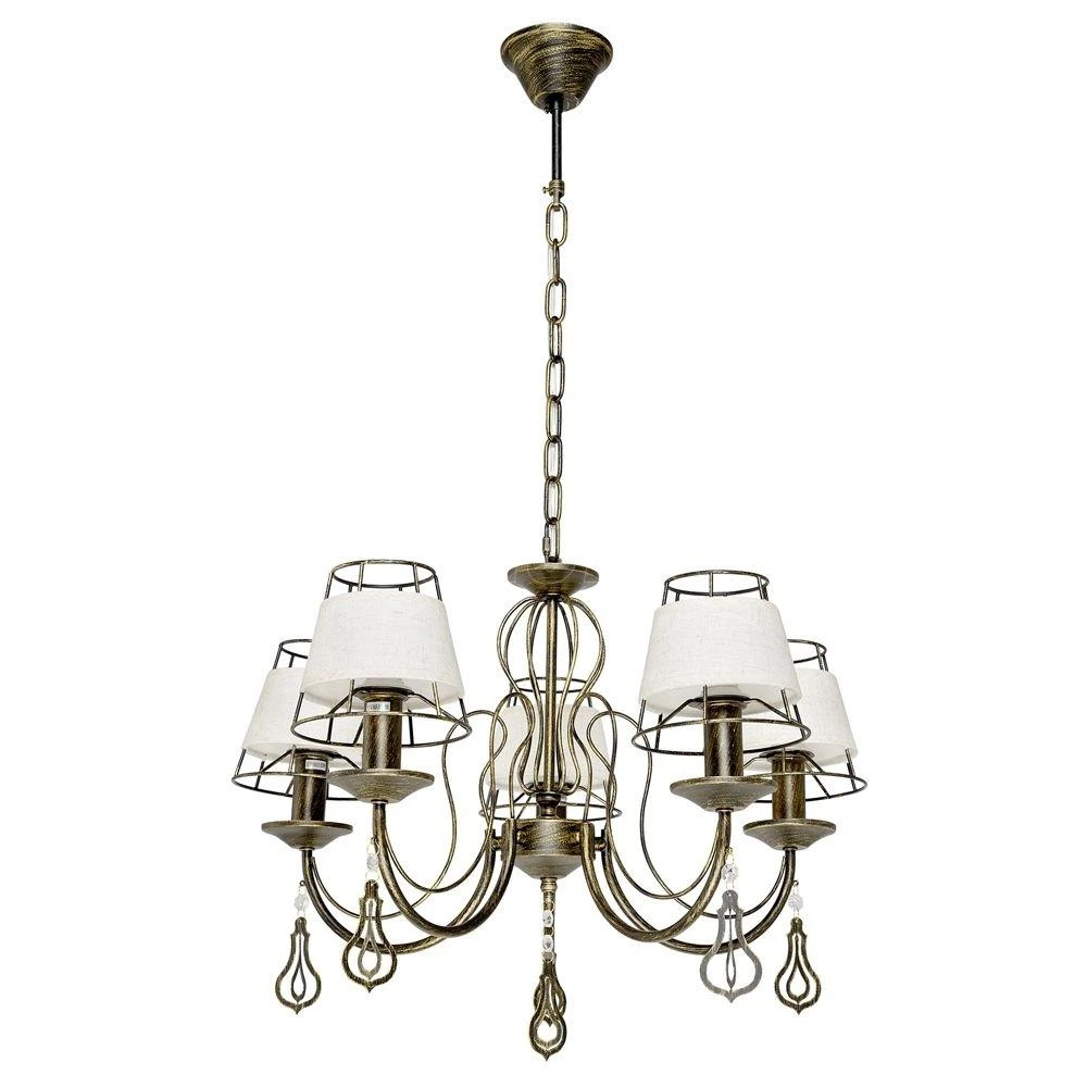 Светильники дают много света благодаря оригинальному дизайнерскому решению в оформлении плафонов. Графичность люстр подчеркивают декоративные 3D-подвески из металла.