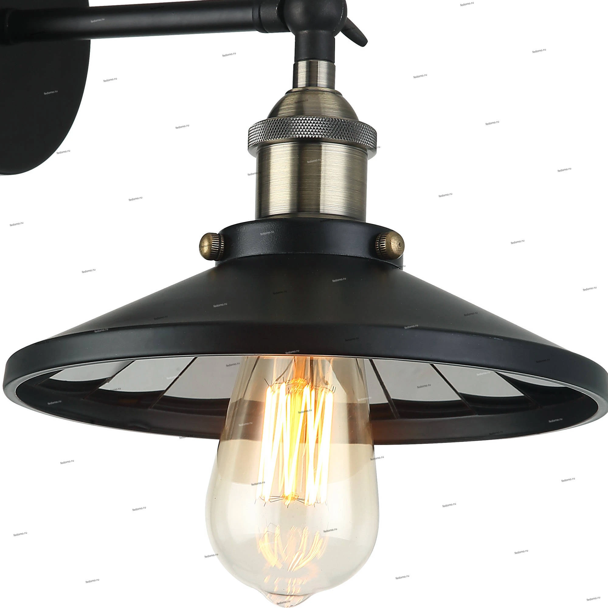 Используемые материалы арматуры - металл, плафона - металл, стекло. Цвет базы - черный/бронза, плафон - черный.