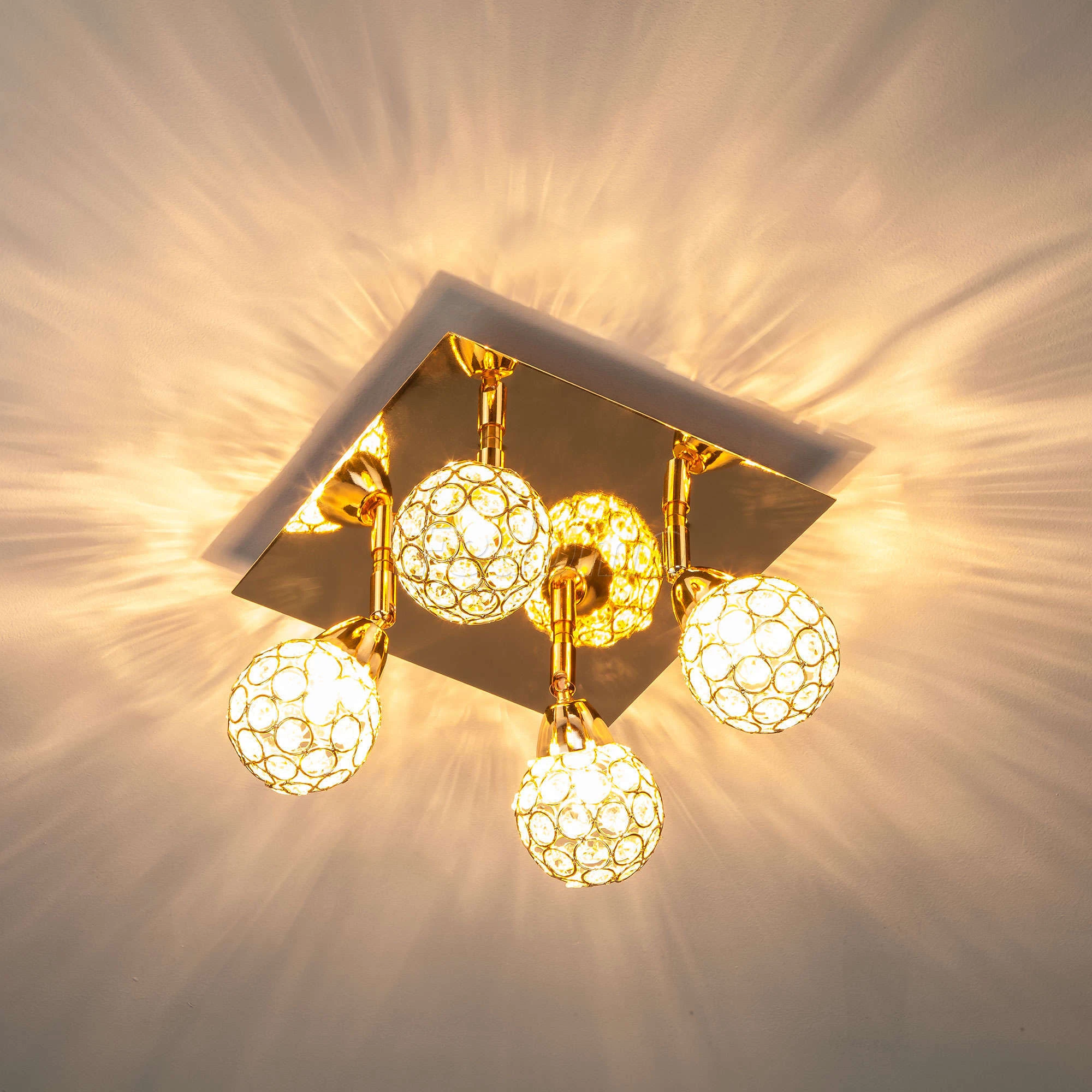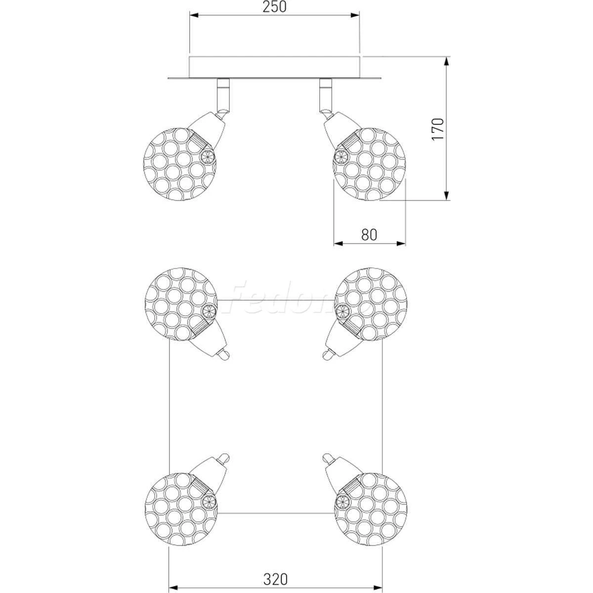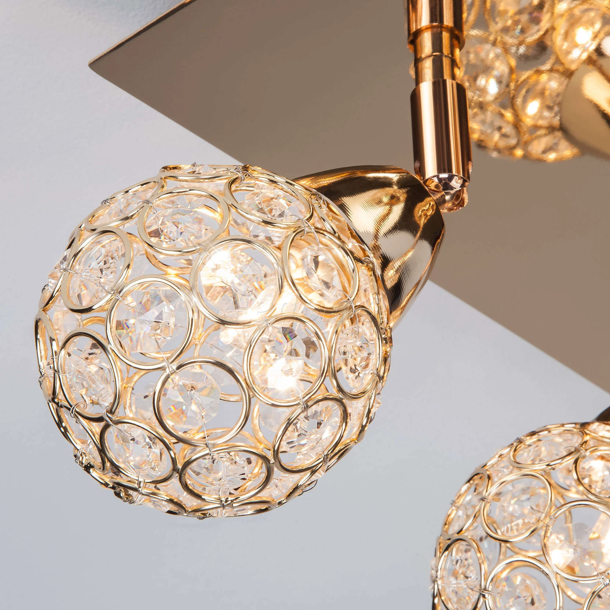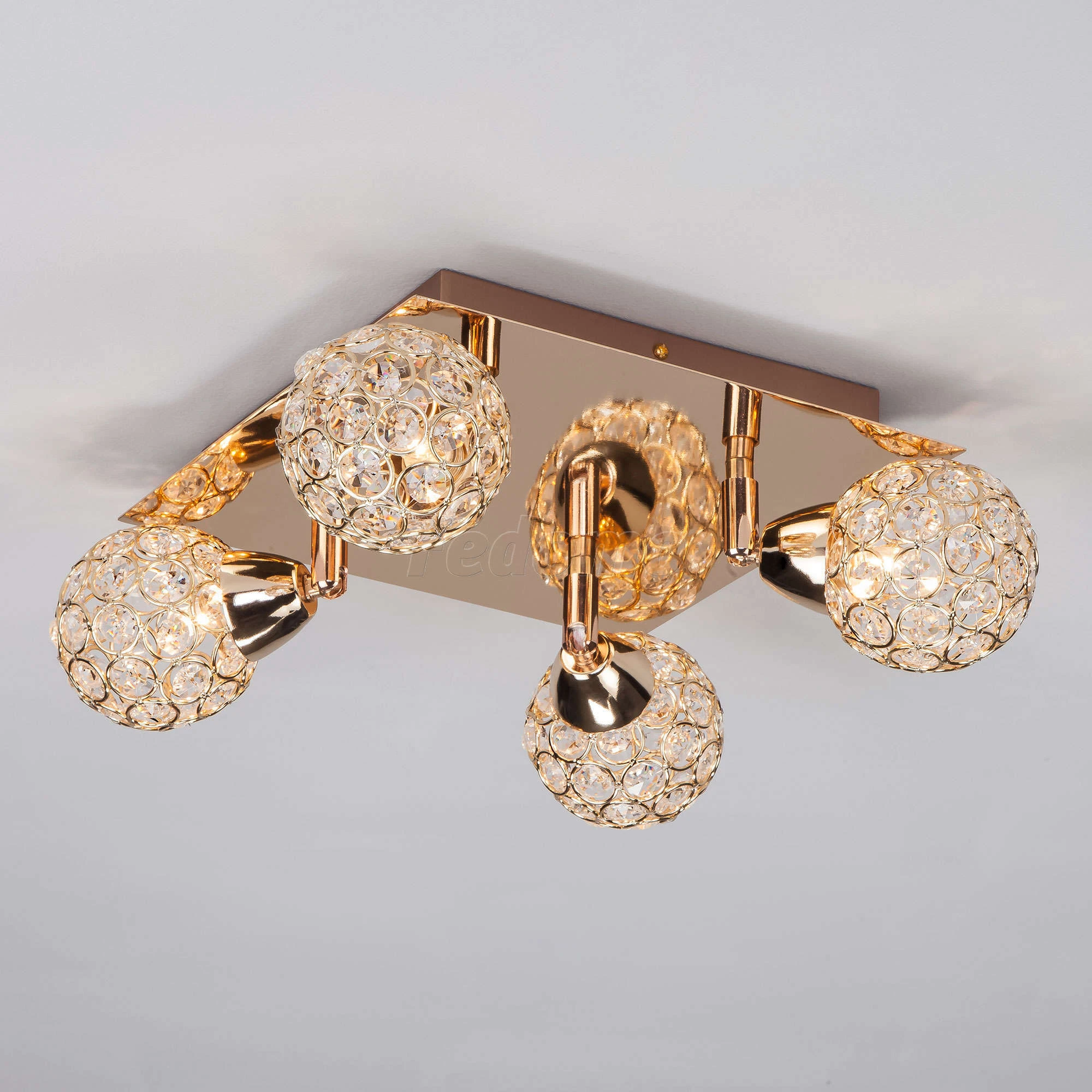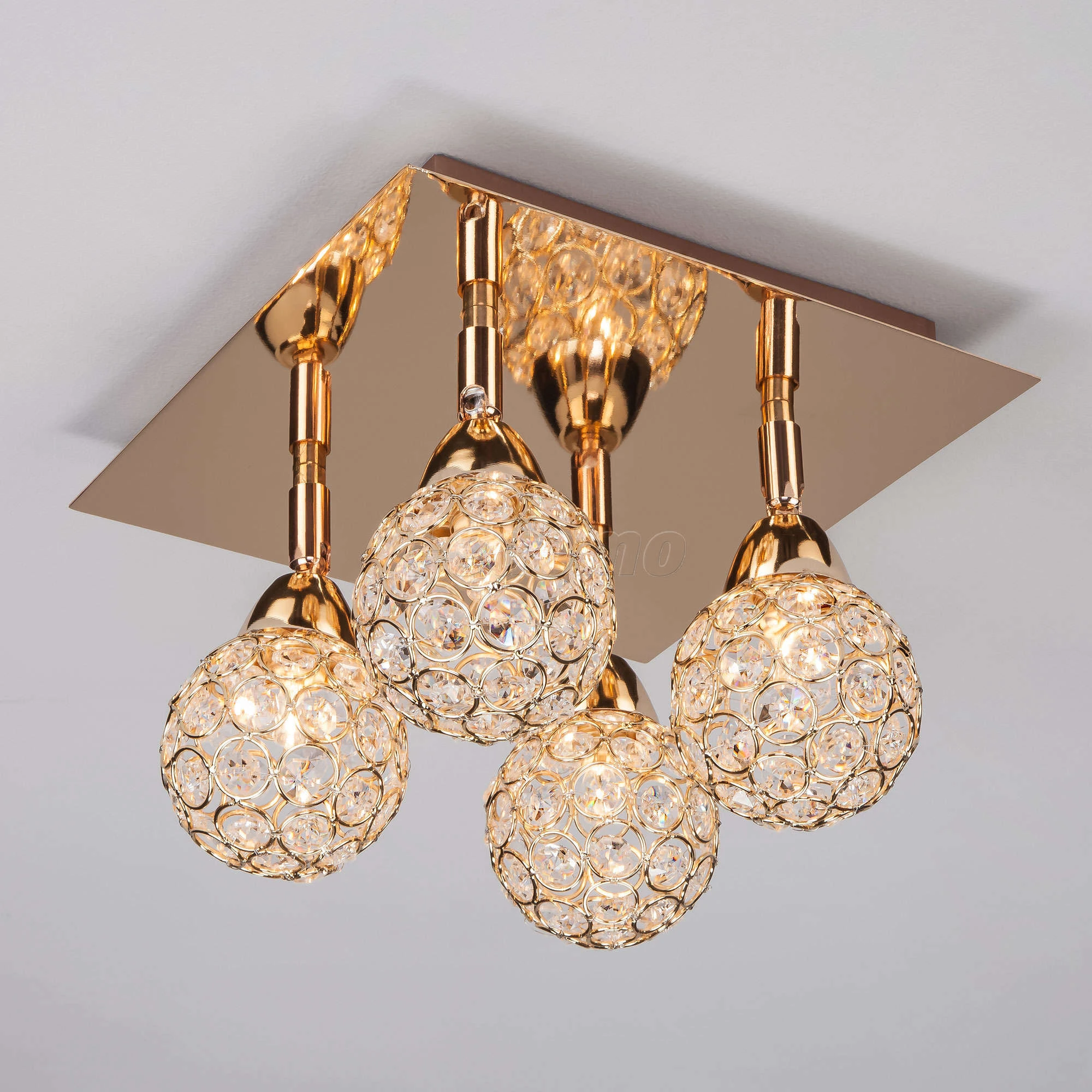 Спот 20042/4 золото из серии Mirage от компании Eurosvet из хрусталя удачно впишется в интерьер гостиной, спальни, оформленных в стиле модерн. Спот с узором с кругами имеет 4 плафона и 4 лампочки с цоколем G9 с мощностью 40W, напряжением 220V. Модель поддерживает подключение диммера. Светильник устанавливается на монтажную пластину. Основной цвет и материал арматуры - золотистый металл, материал плафона - хрусталь, металл. Лампочки имеются в комплекте. Габариты модели: длина - 250 мм, ширина - 250 мм, высота - 70 мм. Лучшая цена и условия доставки на Eurosvet 20042/4 золото в интернет-магазине Fedomo.ru.