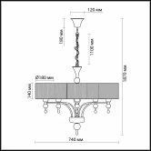 Материалы исполнения плафон: абажур из ткани, арматура: металл, декор: декоры на штанге из сферического стекла. Цвет арматуры хром. Плафон в цвете: белый. Люстра 2005/5 серии Viga выполнена в стиле модерн. Покрытие металлического каркаса цвета хром, центральную часть и концы рожков украшают сферические стекла, абажуры выполнены из ткани белого цвета. Цоколь E27. Мощность 1*60W. Нет ламп в комплекте. Наименование 2005/5 ODL11 189 хром/белый Люстра E27 5*60W 220V VIGA.