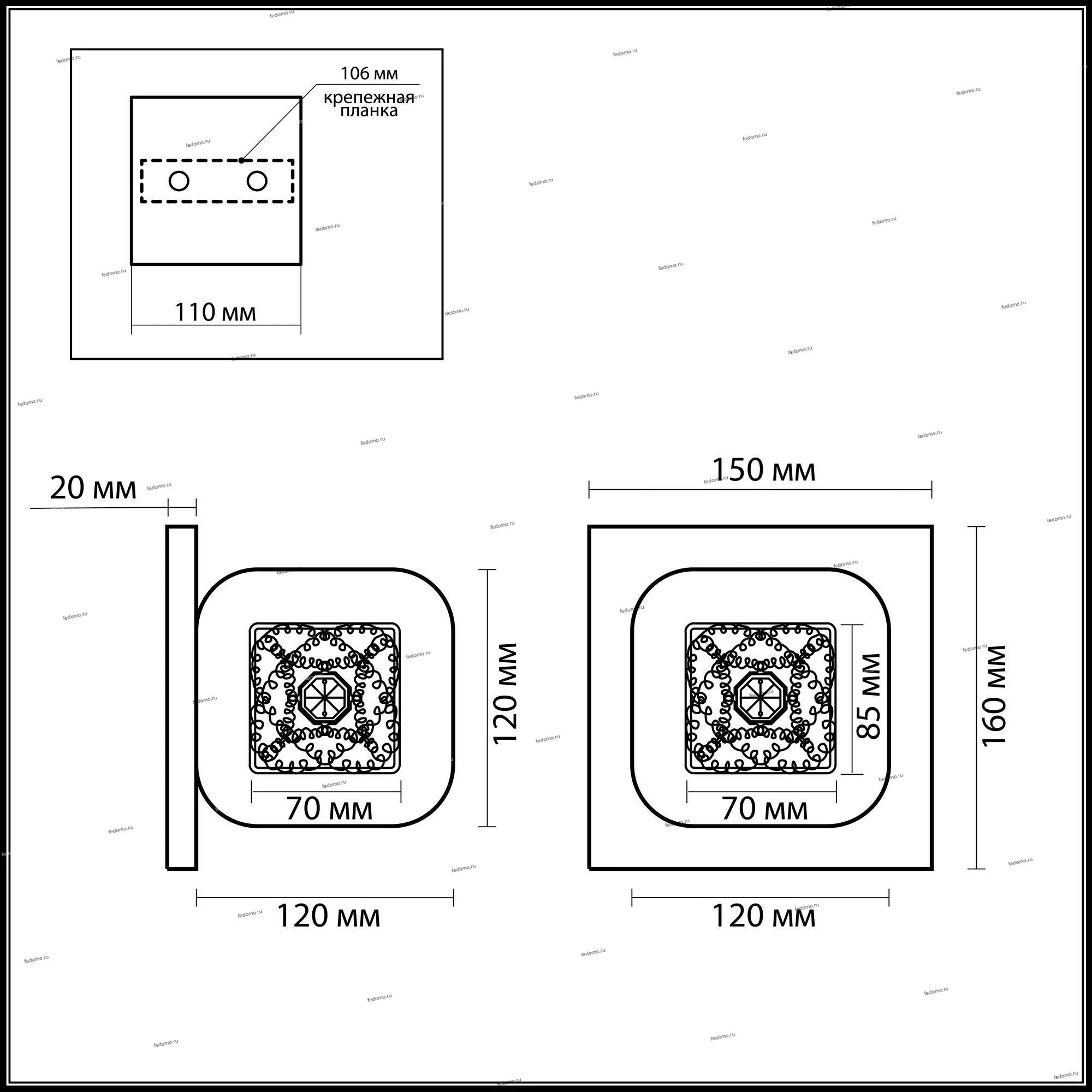 Материалы исполнения плафон: из прозрачного стекла кубической формы, металлический куб с встроенными хрустальными элементами, арматура: металл, декор: хрусталь. Цвет арматуры хром. Плафон в цвете: прозрачный. Особенность: для использования со скрытой проводкой. Бра 2006/1W серии Forta состоит из металлического основания цвета хром и необычного двойного плафона: внутри в виде обвитого алюминиевой проволокой куба, и снаружи прозрачным стеклянным кубом. Цоколь G9. Мощность 1*40W. Нет ламп в комплекте. Наименование 2006/1W ODL11 194 хром Бра G9 40W 220V FORTA.