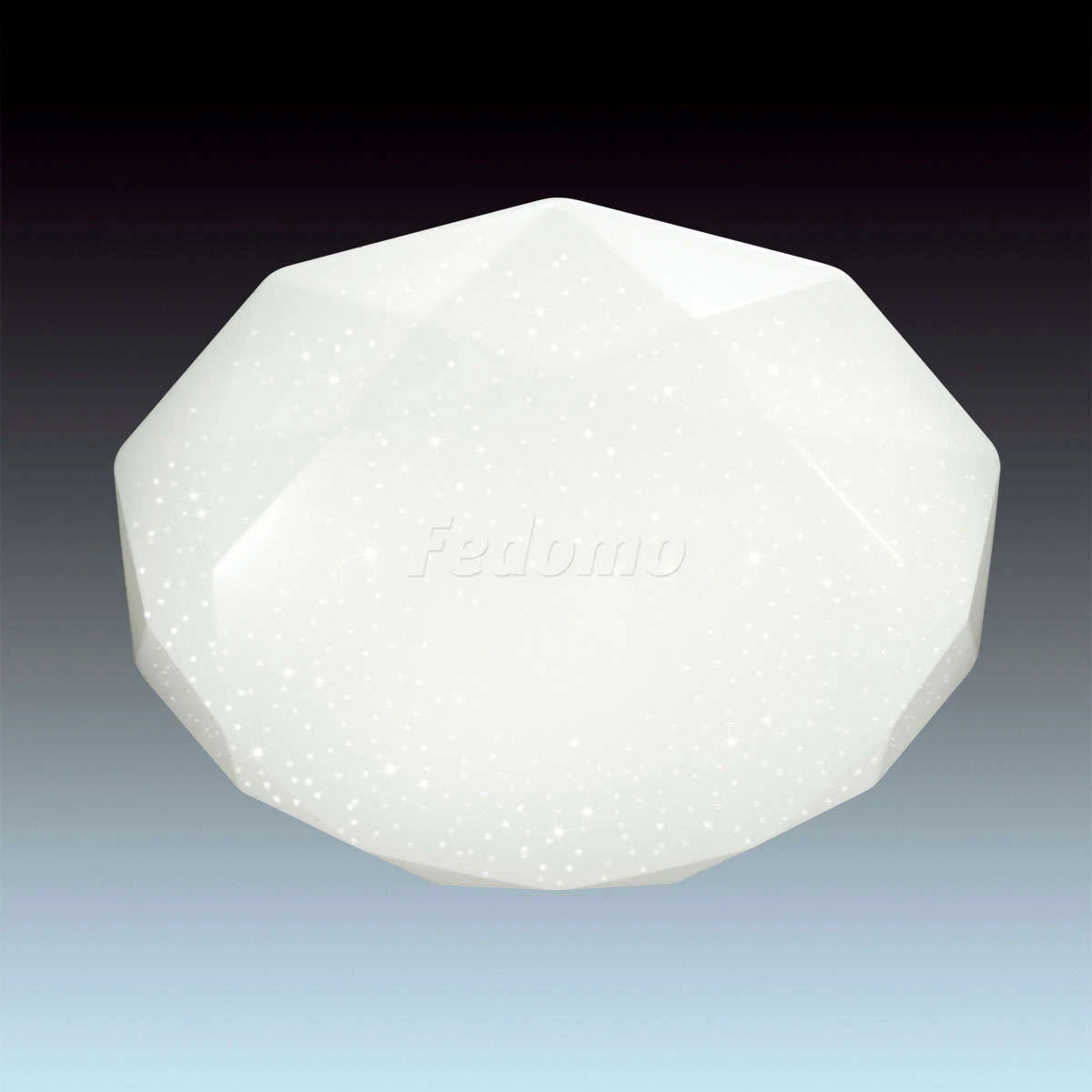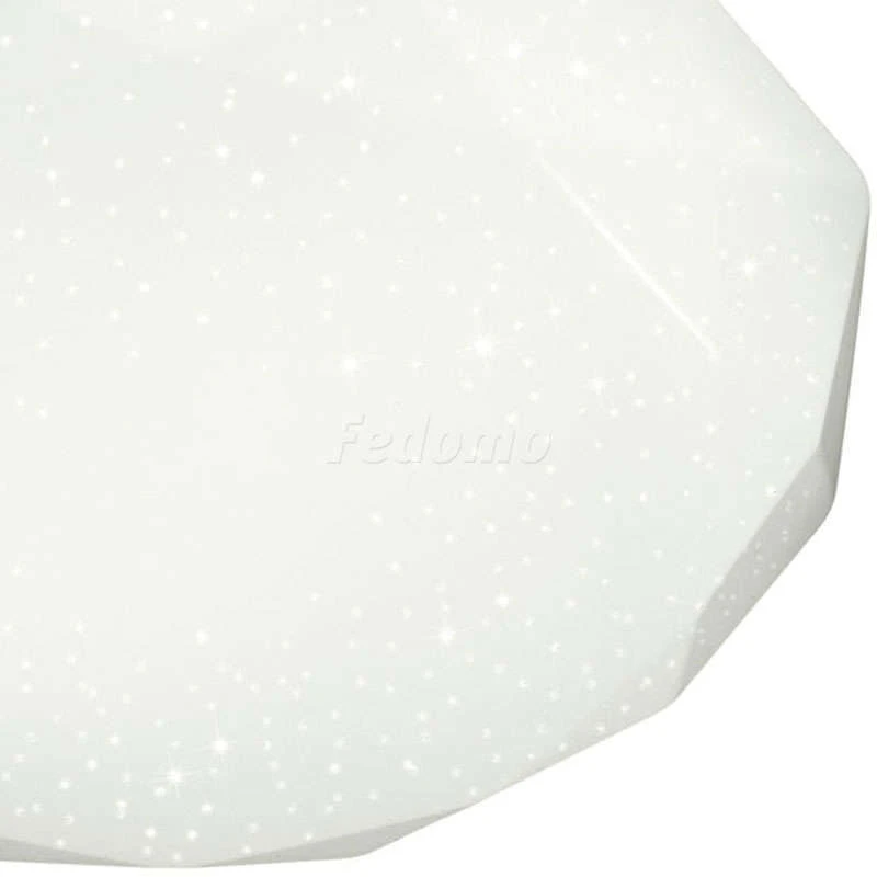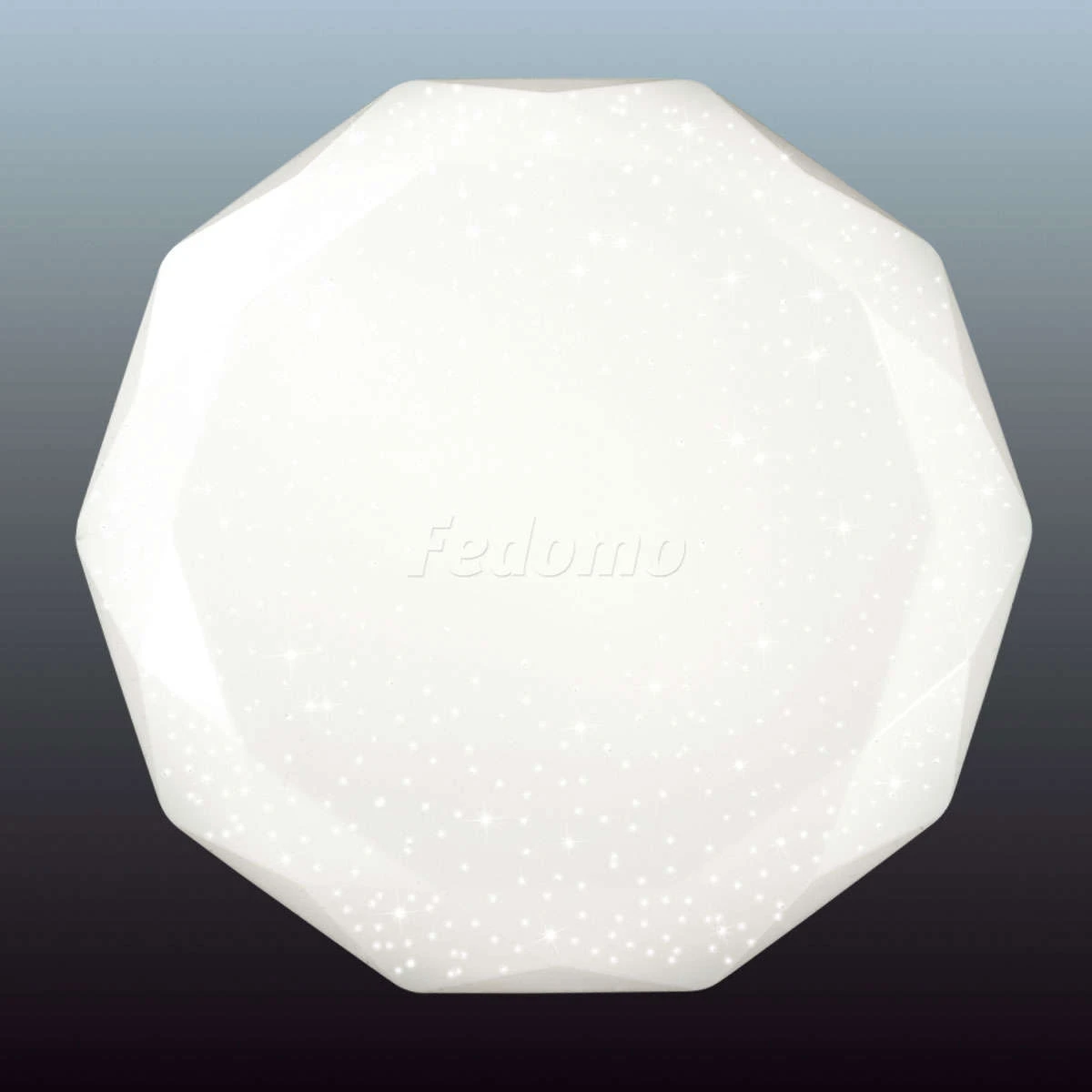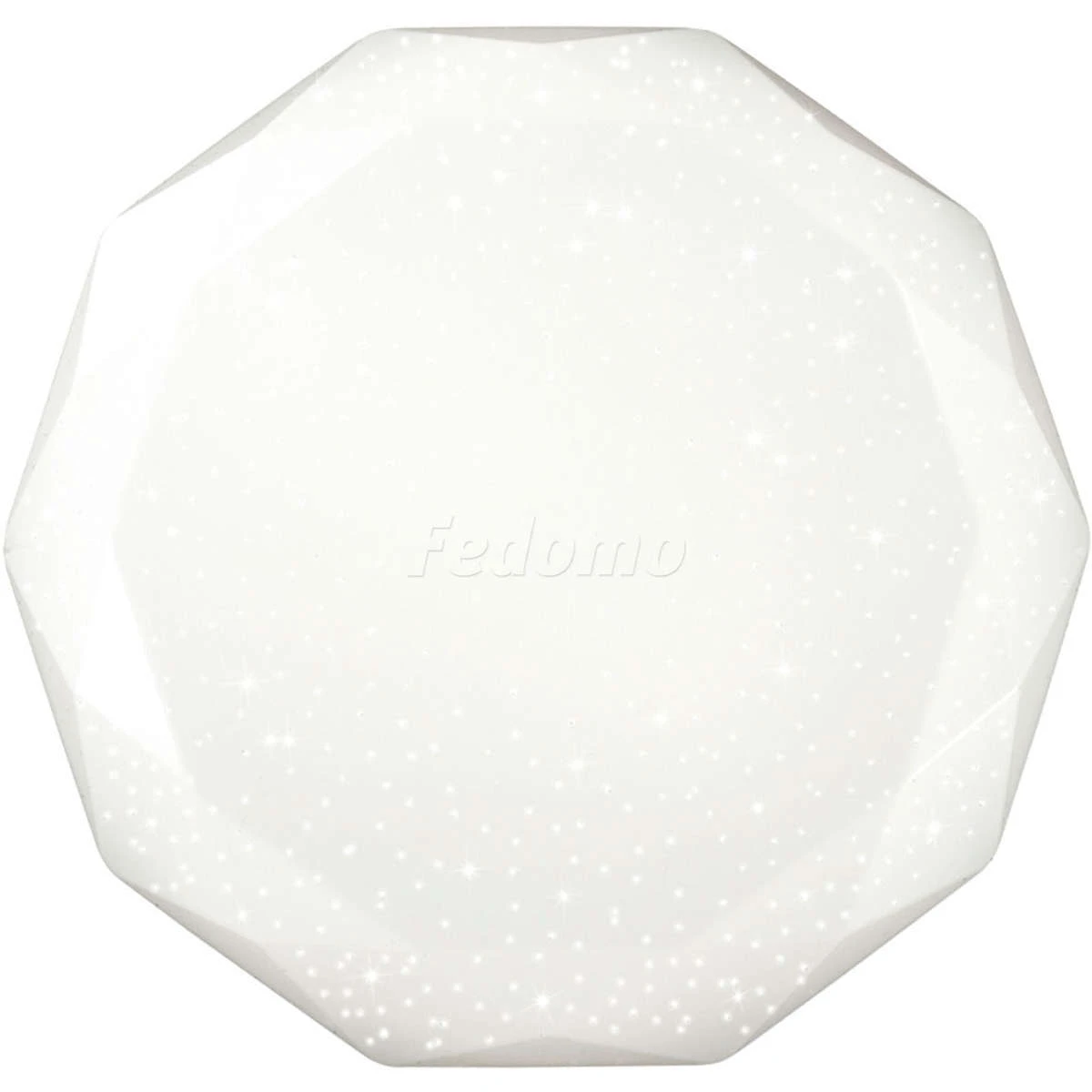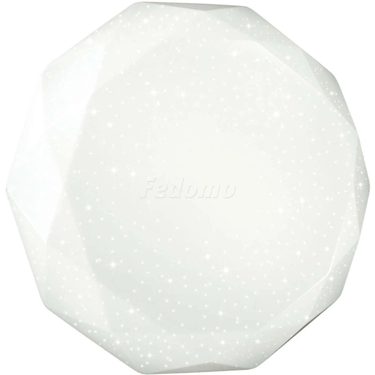 Материалы исполнения База - металл. Плафон - декорированный пластик. Цвет арматуры белый. Плафон в цвете: белый. Особенность: заменяемый LED модуль. Декор мелкие точки на плафоне, материал декора пластик, цвет прозрачный. Светильник 2012/FL серии TORA cостоит из металлического основания (базы) и пластикового рассевателя. Материал рассеивателя - высококачественный акрил белого цвета с глянцевой поверхностью, обеспечивающий светильнику равномерное рассеивание и хорошее светопропускание. Форма плафона: круглая, декорирована рельефным орнаментом по краям и рисунком в виде прозрачных точек, которые придают включенному светильнику красивый эффект "звездного мерцания" и переливания. Степень защиты IP43 позволяет использовать светильник в определенных зонах влажных помещений. В комплект входит заменяемый LED модуль с линзами, мощностью 90Вт, которая соответствует лампе накаливания 650Вт. А также пульт ДУ, с помощью которого осуществляется плавное изменение цветовой температуры 3000-6500К, изменение яркости, переход в режим переключения холодного/белого/теплого/ночного света. Наименование 2012/FL SN 061 св-к TORA пластик LED 90Вт 3000-6500К D575 IP43 пульт ДУ.