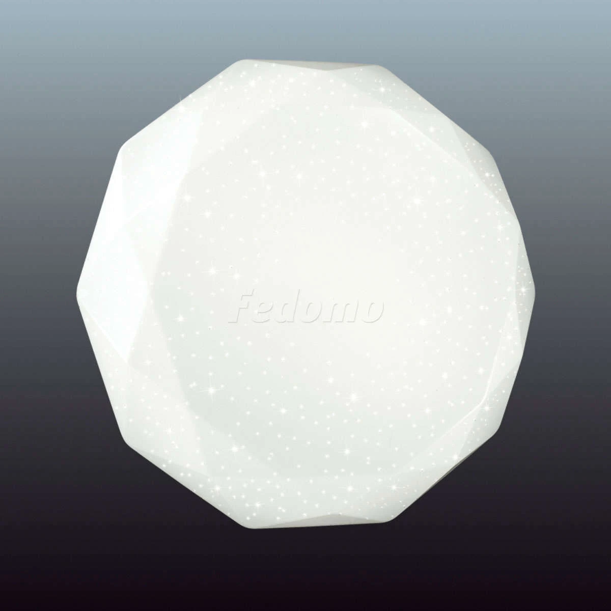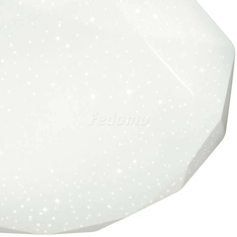 Материалы исполнения База - металл. Плафон - декорированный пластик. Цвет арматуры белый. Плафон в цвете: белый. Декор мелкие точки на плафоне, материал декора пластик, цвет прозрачный. Светильник 2012/ML серии TORA cостоит из металлического основания (базы) и пластикового рассевателя. Материал рассеивателя - высококачественный акрил белого цвета с глянцевой поверхностью, обеспечивающий светильнику равномерное рассеивание и хорошее светопропускание. Форма плафона: круглая, декорирована рельефным орнаментом по краям и рисунком в виде прозрачных точек, которые придают включенному светильнику красивый эффект "звездного мерцания" и переливания. Степень защиты IP43 позволяет использовать светильник в определенных зонах влажных помещений. В комплект входит LED модуль с линзами, мощностью 160Вт, которая соответствует лампе накаливания 1150Вт. А также пульт ДУ, с помощью которого осуществляется плавное изменение цветовой температуры 3000-6500К, изменение яркости, переход в режим переключения холодного/белого/теплого/ночного света. Наименование 2012/ML SN 046 св-к TORA пластик LED 160Вт 3000-6500К D800 IP43 пульт ДУ.
