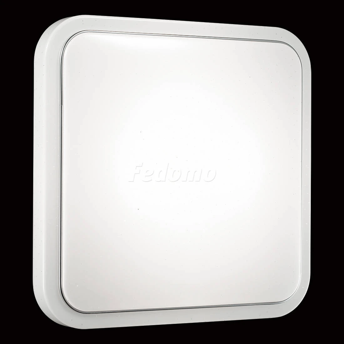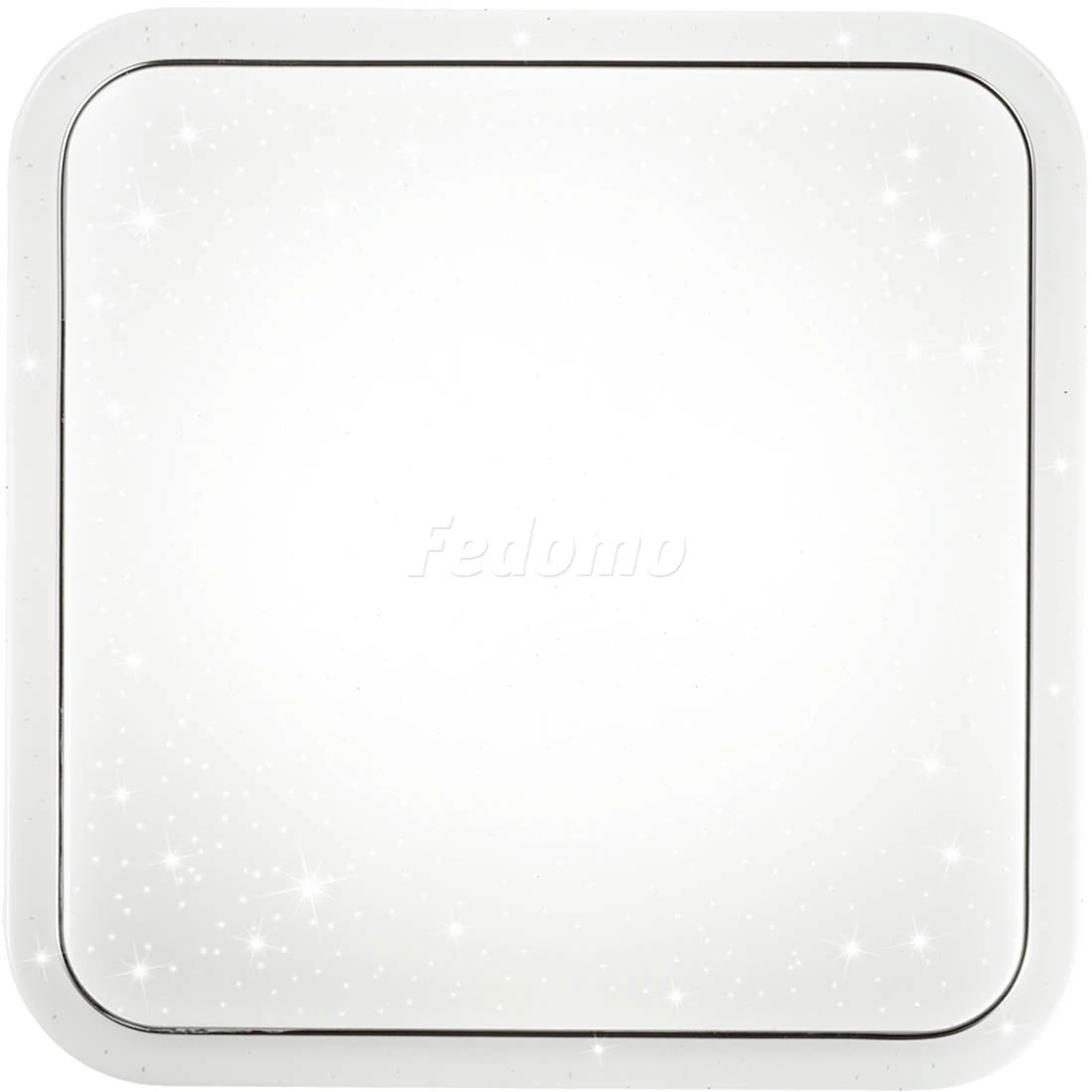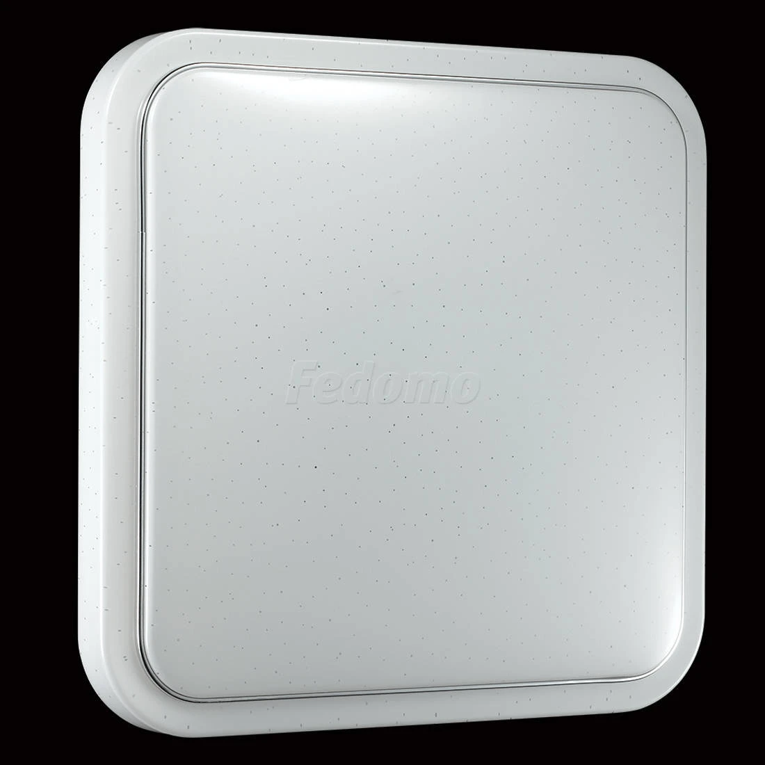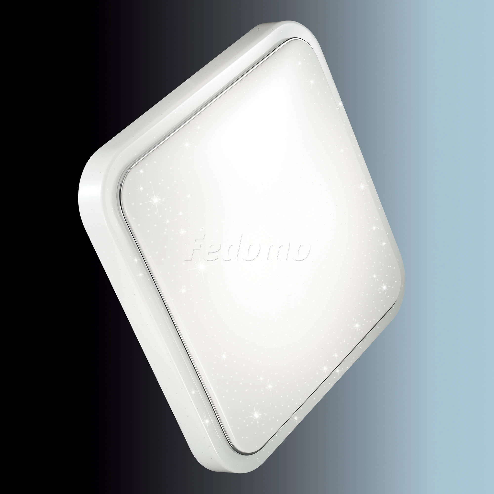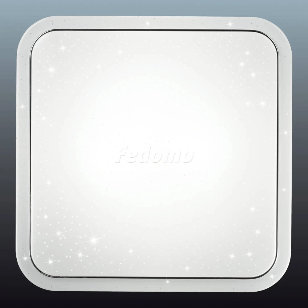 Материалы исполнения База - металл. Плафон - декорированный пластик. Цвет арматуры белый. Плафон в цвете: хром. Особенность: заменяемый LED модуль. Декор кант, материал декора пластик, цвет хром. Светильник 2014/D серии KVADRI cостоит из металлического основания (базы) и пластикового рассевателя. Материал рассеивателя - высококачественный акрил белого цвета с глянцевой поверхностью, обеспечивающий светильнику равномерное рассеивание и хорошее светопропускание. Форма плафона: квадратная, декорирована кантом цвета хром и прозрачными точками, придающими включенному светильнику красивый эффект "звездного мерцания" и переливания. Степень защиты IP43 позволяет использовать светильник в определенных зонах влажных помещений. В комплект входит заменяемый LED модуль с линзами, мощностью 48Вт, которая соответствует лампе накаливания 350Вт. Источник света имеет комфортную цветовую температуру 3950-4136К (белый свет). Наименование 2014/D SN 062 св-к KVADRI пластик LED 48Вт 3950-4136K 430х430 IP43.