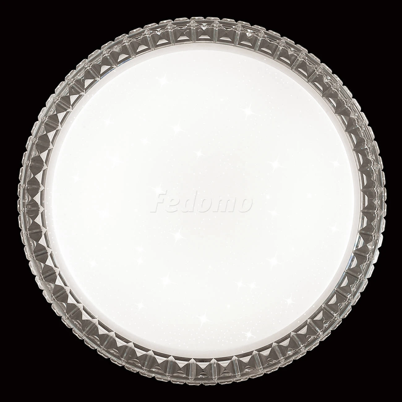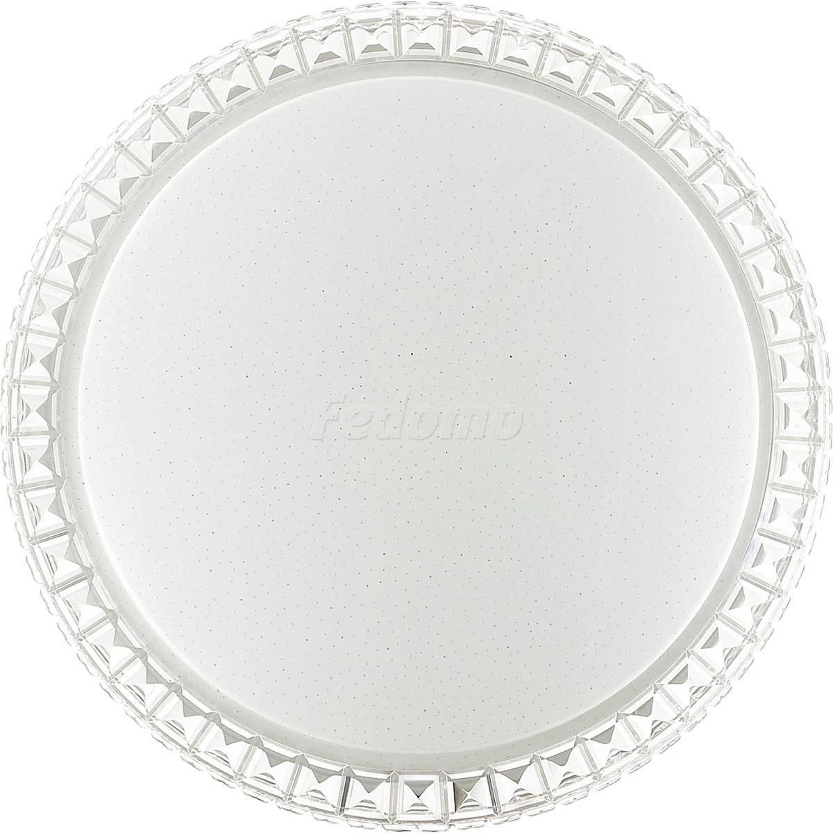 Материалы исполнения База - металл. Плафон - декорированный пластик. Цвет арматуры белый. Плафон в цвете: прозрачный. Особенность: заменяемый LED модуль. Декор рельефный обод с эффектом переливания, материал декора пластик, цвет прозрачный. Светильник 2036/EL серии BRISA cостоит из металлического основания (базы) и пластикового рассевателя. Материал рассеивателя - высококачественный акрил белого цвета с глянцевой поверхностью, обеспечивающий светильнику равномерное рассеивание и хорошее светопропускание. Форма плафона: круглая, декорирована рисунком в виде прозрачных точек и рельефным ободом, которые придают включенному светильнику красивый эффект "звездного мерцания" и переливания. Степень защиты IP43 позволяет использовать светильник в определенных зонах влажных помещений. В комплект входит заменяемый LED модуль с линзами, мощностью 72Вт, которая соответствует лампе накаливания 520Вт. А также пульт ДУ, с помощью которого осуществляется плавное изменение цветовой температуры 3000-6500К, изменение яркости, переход в режим переключения холодного/белого/теплого/ночного света. Наименование 2036/EL SN 035 св-к BRISA пластик LED 72Вт 3000-6500K D500 IP43 пульт ДУ.