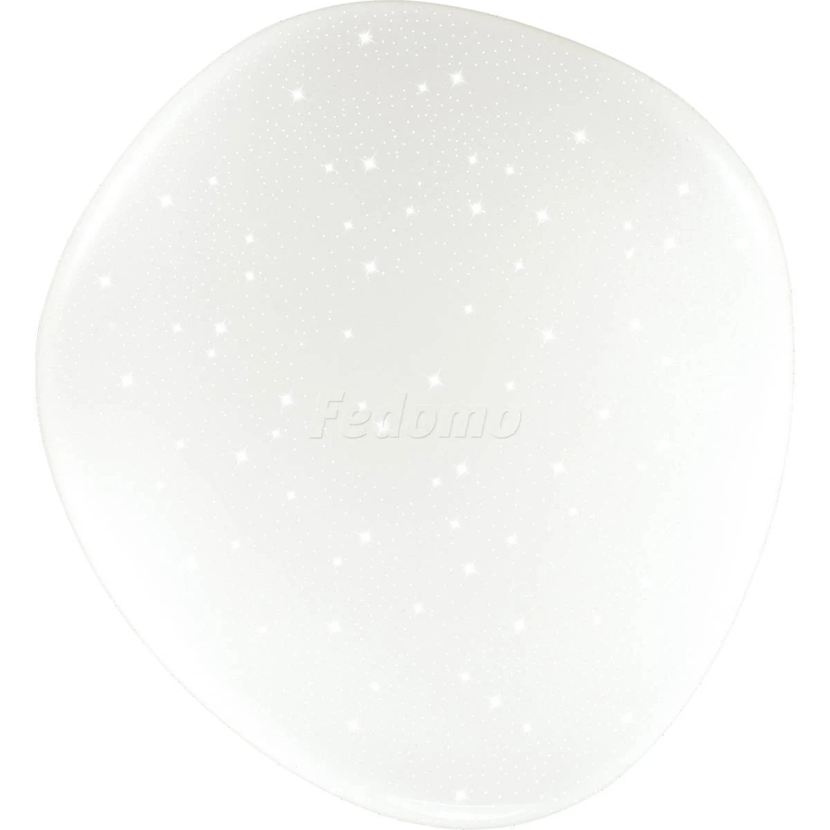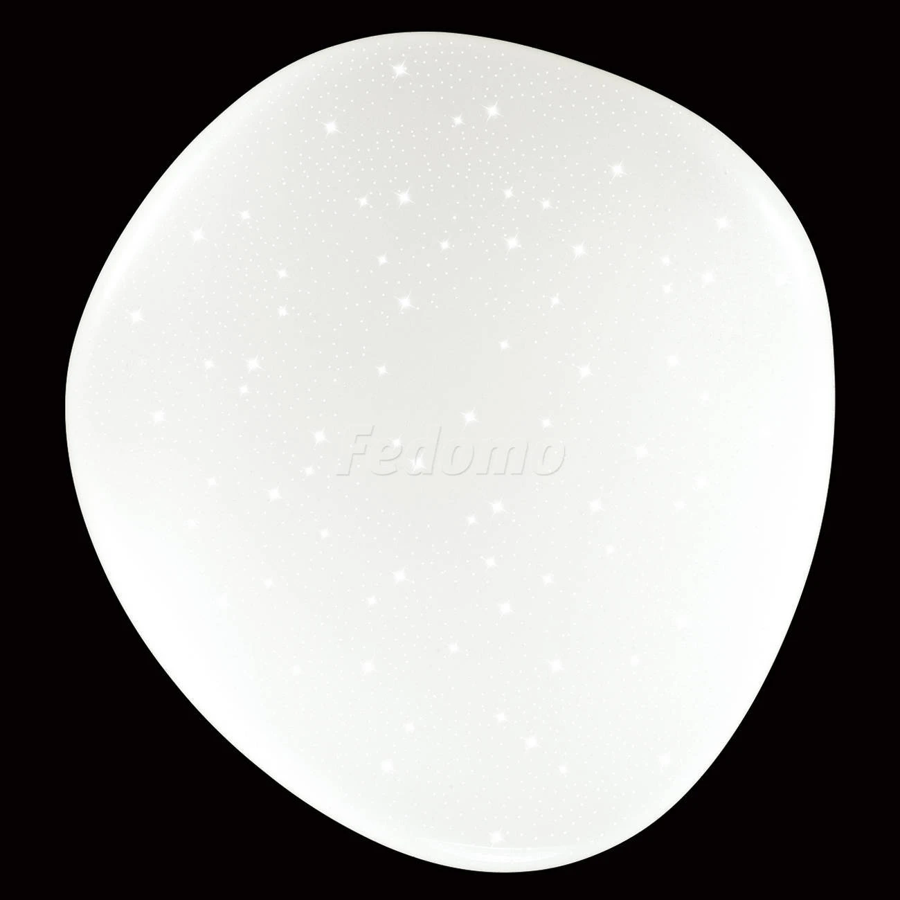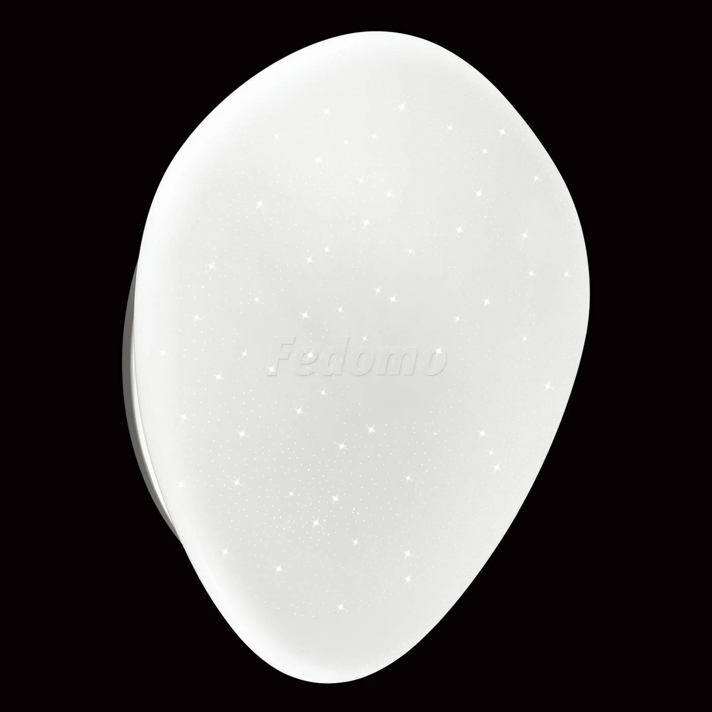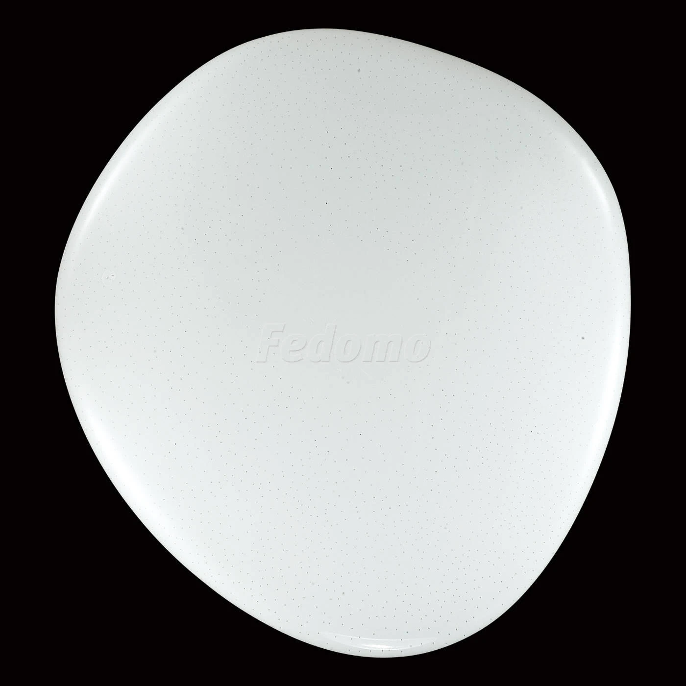 Материалы исполнения База - металл. Плафон - декорированный пластик. Цвет арматуры белый. Плафон в цвете: белый. Особенность: заменяемый LED модуль. Декор форма плафона, имитирующая камень, материал декора пластик, цвет белый. Светильник 2039//DL серии STONE cостоит из металлического основания (базы) и пластикового рассевателя. Материал рассеивателя - высококачественный акрил белого цвета с глянцевой поверхностью, обеспечивающий светильнику равномерное рассеивание и хорошее светопропускание. Форма плафона: индивидуальная и необычная - имитирует камень, декорирована прозрачными точками, придающими включенному светильнику красивый эффект "звездного мерцания" и переливания. Степень защиты IP43 позволяет использовать светильник в определенных зонах влажных помещений. В комплект входит заменяемый LED модуль с линзами, мощностью 48Вт, которая соответствует лампе накаливания 350Вт. А также пульт ДУ, с помощью которого осуществляется плавное изменение цветовой температуры 3000-6500К, изменение яркости, переход в режим переключения холодного/белого/теплого/ночного света. Наименование 2039/DL SN 038 св-к STONE пластик LED 48Вт 3000-6500K 500х460 IP43 пульт ДУ.
