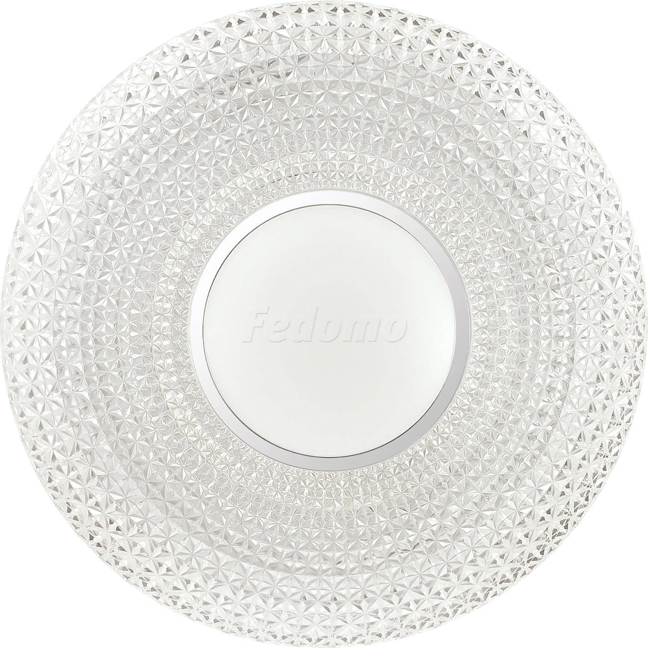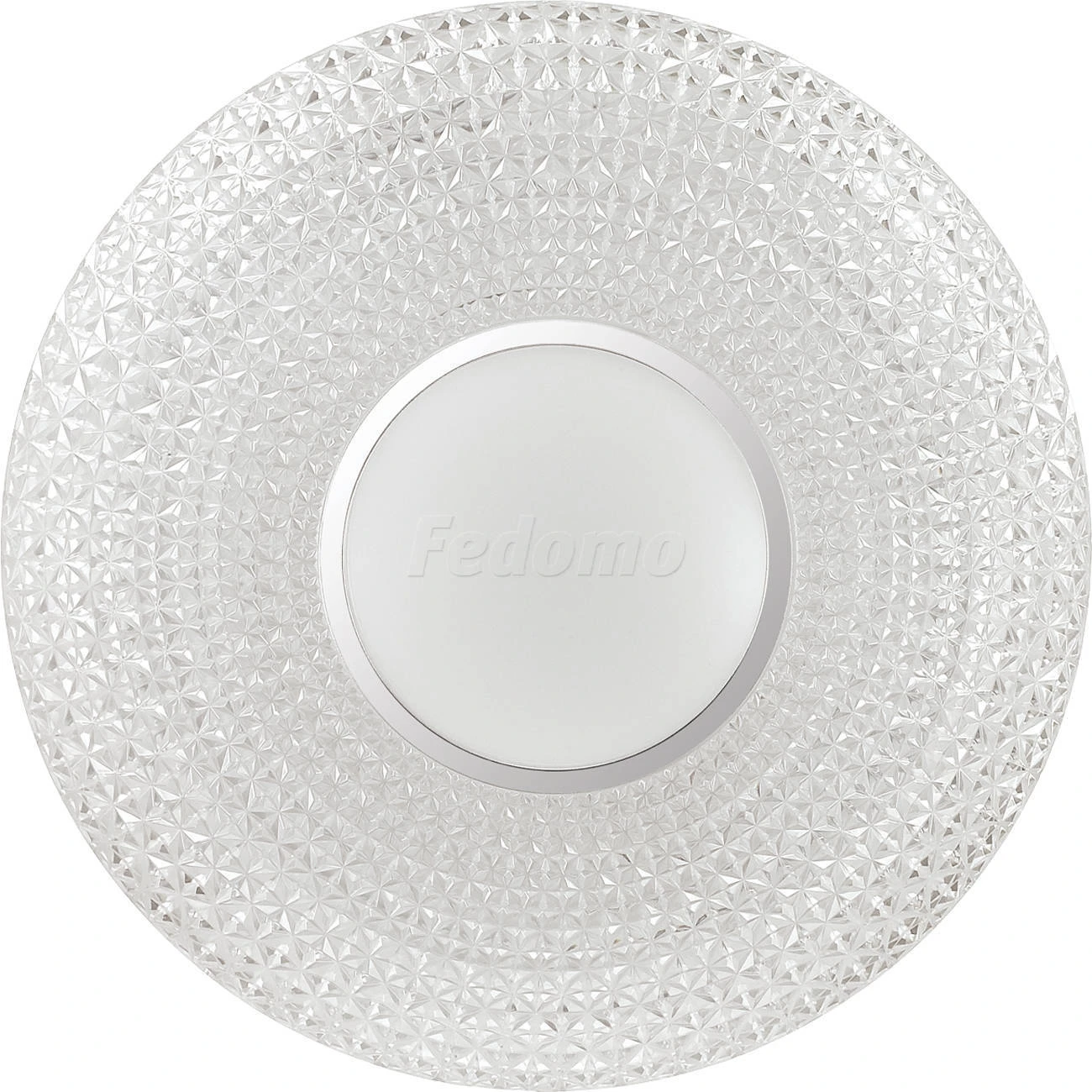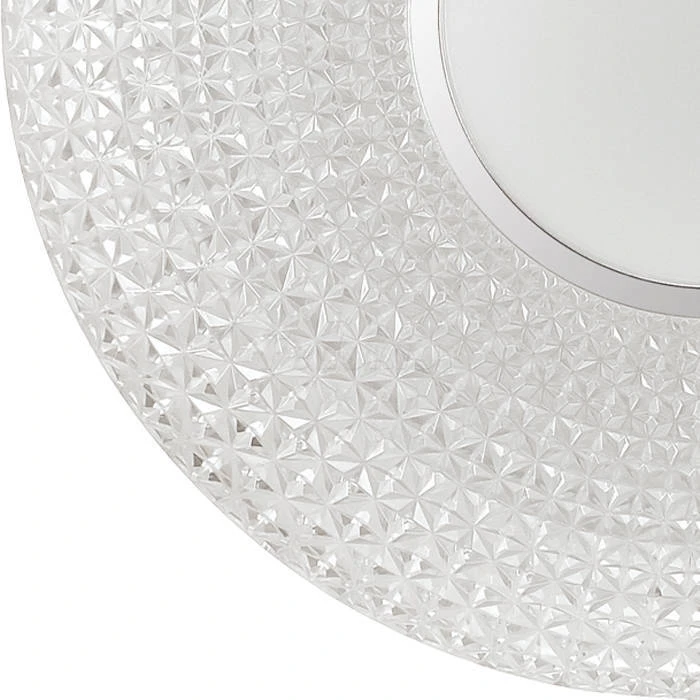 Материалы исполнения База - металл. Плафон - декорированный пластик. Цвет арматуры белый. Плафон в цвете: прозрачный. Особенность: заменяемый LED модуль, центральная белая вставка. Декор кант, материал декора металл, цвет хром. Светильник 2048//DL серии VISMA cостоит из металлического основания (базы) и пластикового рассевателя. Материал рассеивателя - высококачественный акрил, обеспечивающий светильнику равномерное рассеивание и хорошее светопропускание. Форма плафона: круглая, декорирована центральной вставкой с кантом цвета хром и рельефной структурой "под хрусталь", которая придает включенному светильнику красивый эффект переливания. Степень защиты IP43 позволяет использовать светильник в определенных зонах влажных помещений. В комплект входит заменяемый LED модуль с линзами, мощностью 48Вт, которая соответствует лампе накаливания 350Вт. А также пульт ДУ, с помощью которого осуществляется плавное изменение цветовой температуры 3000-6500К, изменение яркости, переход в режим переключения холодного/белого/теплого/ночного света. Наименование 2048/DL SN 037 св-к VISMA пластик LED 48Вт 3000-6500K D420 IP43 пульт ДУ.