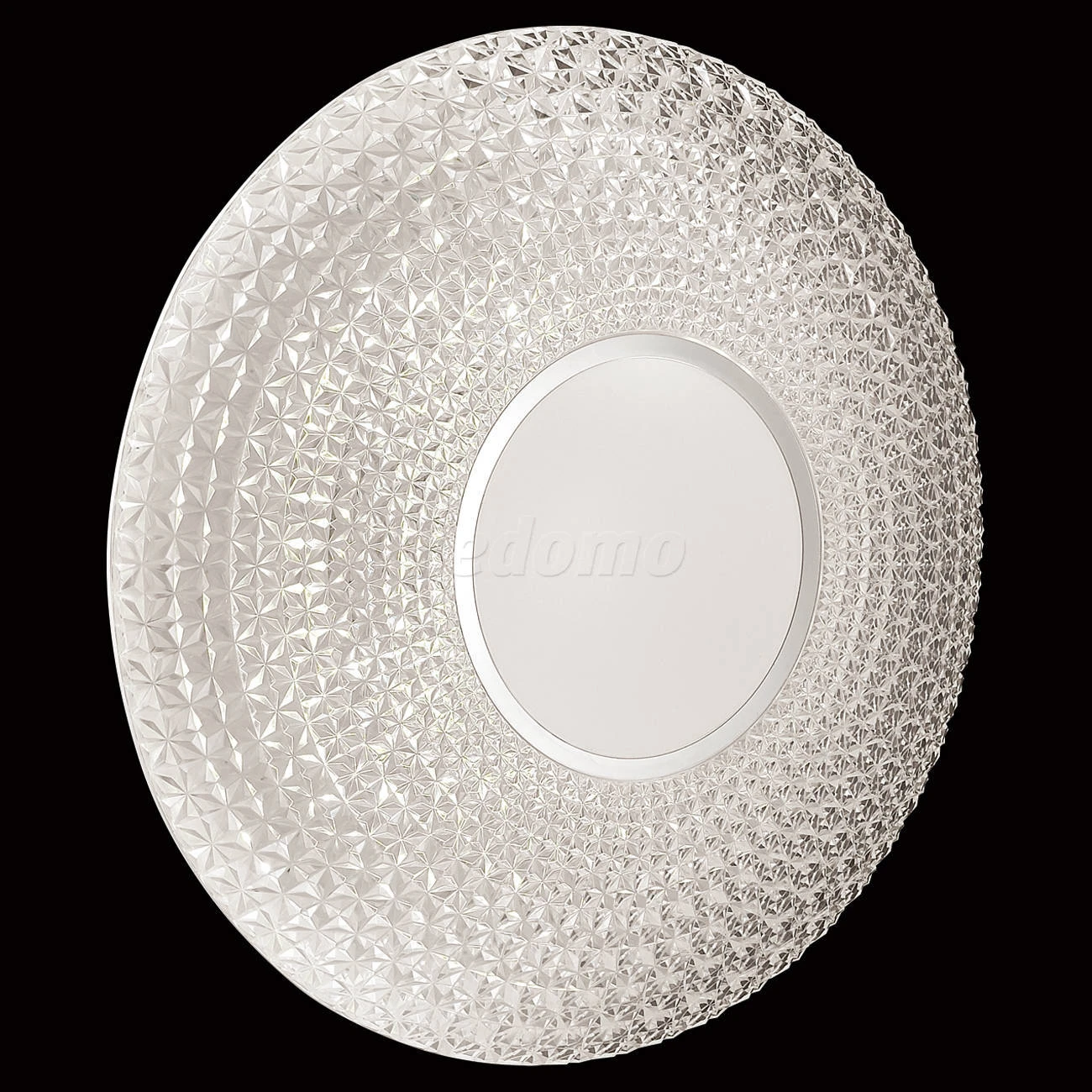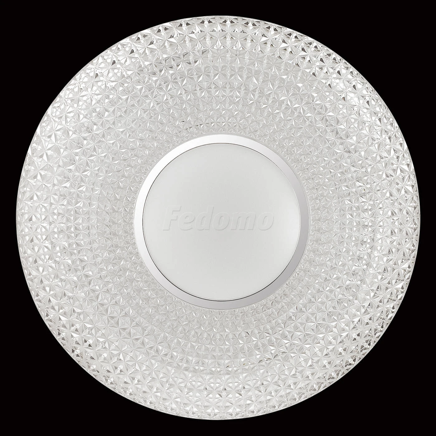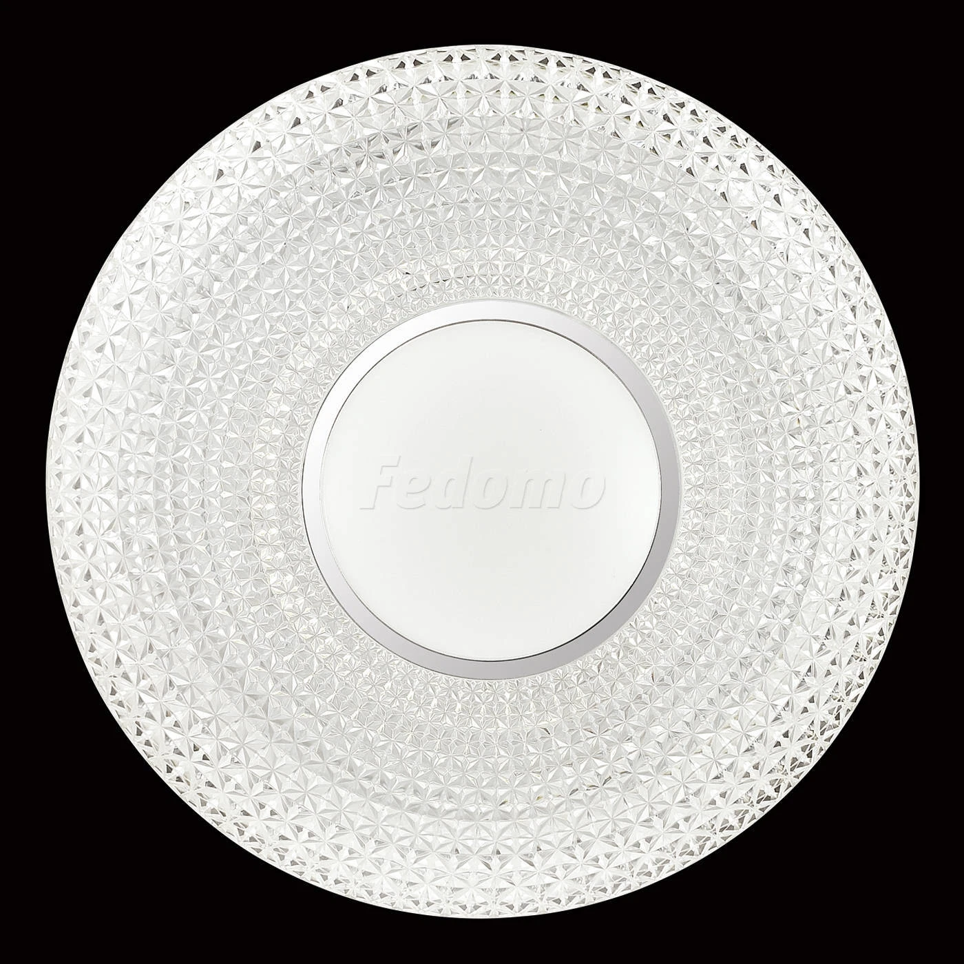 Материалы исполнения База - металл. Плафон - декорированный пластик. Цвет арматуры белый. Плафон в цвете: прозрачный. Особенность: заменяемый LED модуль, центральная белая вставка. Декор кант, материал декора металл, цвет хром. Светильник 2048//DL серии VISMA cостоит из металлического основания (базы) и пластикового рассевателя. Материал рассеивателя - высококачественный акрил, обеспечивающий светильнику равномерное рассеивание и хорошее светопропускание. Форма плафона: круглая, декорирована центральной вставкой с кантом цвета хром и рельефной структурой "под хрусталь", которая придает включенному светильнику красивый эффект переливания. Степень защиты IP43 позволяет использовать светильник в определенных зонах влажных помещений. В комплект входит заменяемый LED модуль с линзами, мощностью 48Вт, которая соответствует лампе накаливания 350Вт. А также пульт ДУ, с помощью которого осуществляется плавное изменение цветовой температуры 3000-6500К, изменение яркости, переход в режим переключения холодного/белого/теплого/ночного света. Наименование 2048/DL SN 037 св-к VISMA пластик LED 48Вт 3000-6500K D420 IP43 пульт ДУ.