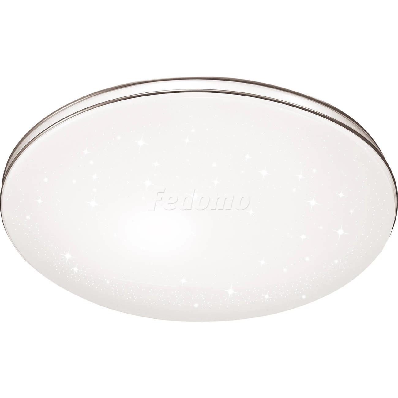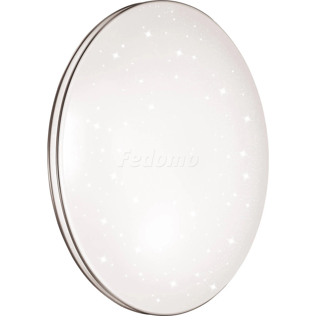 Материалы исполнения База - металл. Плафон - декорированный пластик. Цвет арматуры белый. Плафон в цвете: хром. Особенность: заменяемый LED модуль. Декор обод, материал декора пластик, цвет хром. Светильник 2051/DL серии LEKA cостоит из металлического основания (базы) и пластикового рассевателя. Материал рассеивателя - высококачественный акрил белого цвета с глянцевой поверхностью, обеспечивающий светильнику равномерное рассеивание и хорошее светопропускание. Форма плафона: круглая, декорирована ободом цвета хром и прозрачными точками, придающими включенному светильнику красивый эффект "звездного мерцания" и переливания. Степень защиты IP43 позволяет использовать светильник в определенных зонах влажных помещений. В комплект входит заменяемый LED модуль с линзами, мощностью 48Вт, которая соответствует лампе накаливания 350Вт. Источник света имеет комфортную цветовую температуру 3950-4136К (белый свет). Наименование 2051/DL SN 042 св-к LEKA пластик LED 48Вт 3950-4136K D410 IP43.