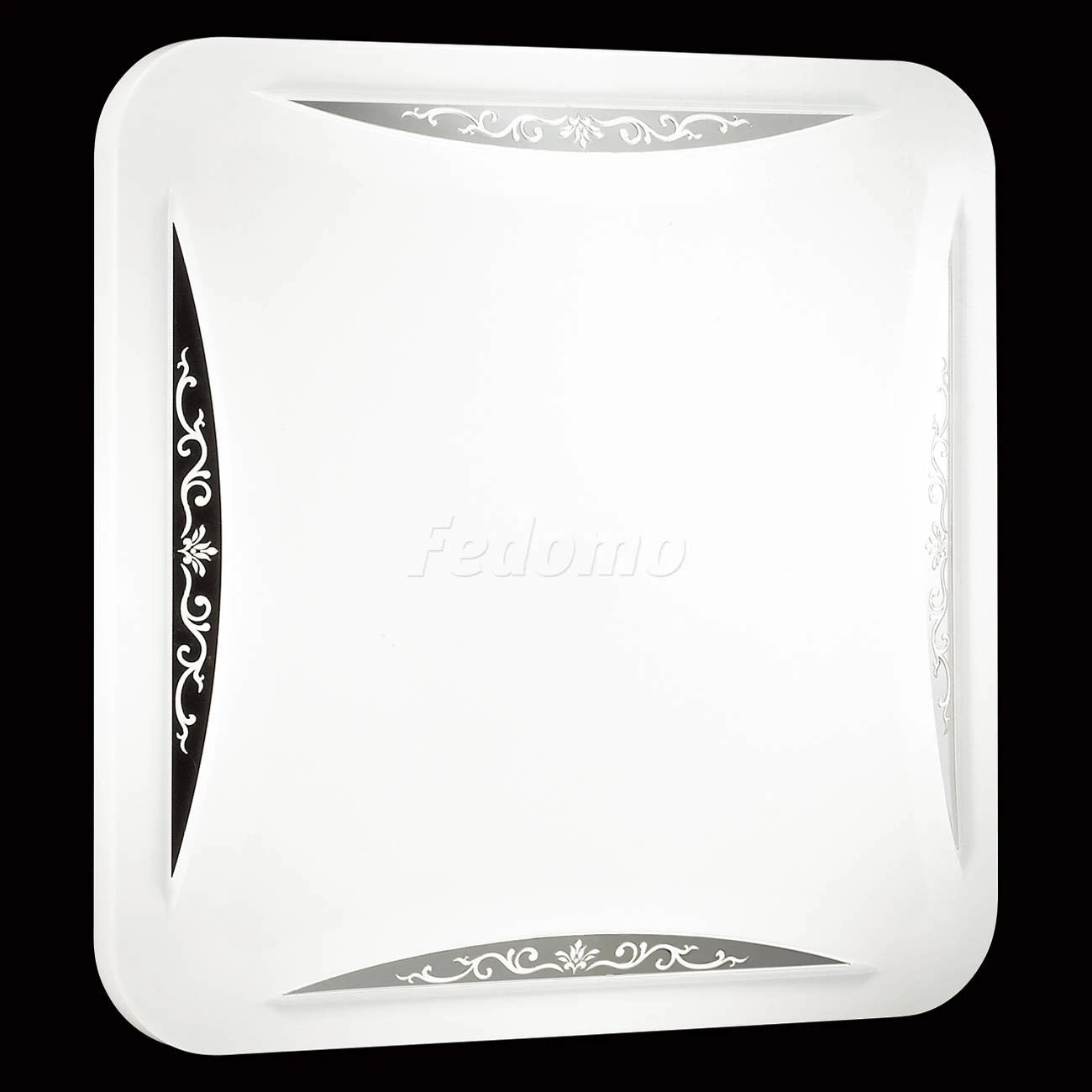 Материалы исполнения База - металл. Плафон - декорированный пластик. Цвет арматуры белый. Плафон в цвете: хром. Особенность: заменяемый LED модуль. Декор вставки с узором, материал декора металл, цвет хром. Светильник 2055/DL серии KRONA cостоит из металлического основания (базы) и пластикового рассевателя. Материал рассеивателя - высококачественный акрил белого матового цвета, обеспечивающий светильнику равномерное рассеивание и хорошее светопропускание. Форма плафона: квадратная, декорирована резными вставками из металла цвета хром. Степень защиты IP43 позволяет использовать светильник в определенных зонах влажных помещений. В комплект входит заменяемый LED модуль с линзами, мощностью 48Вт, которая соответствует лампе накаливания 350Вт. Источник света имеет комфортную цветовую температуру 3950-4136К (белый свет). Наименование 2055/DL SN 044 св-к KRONA пластик LED 48Вт 3950-4136K 430х430 IP43.