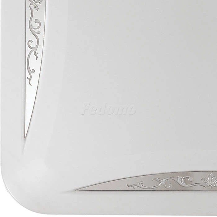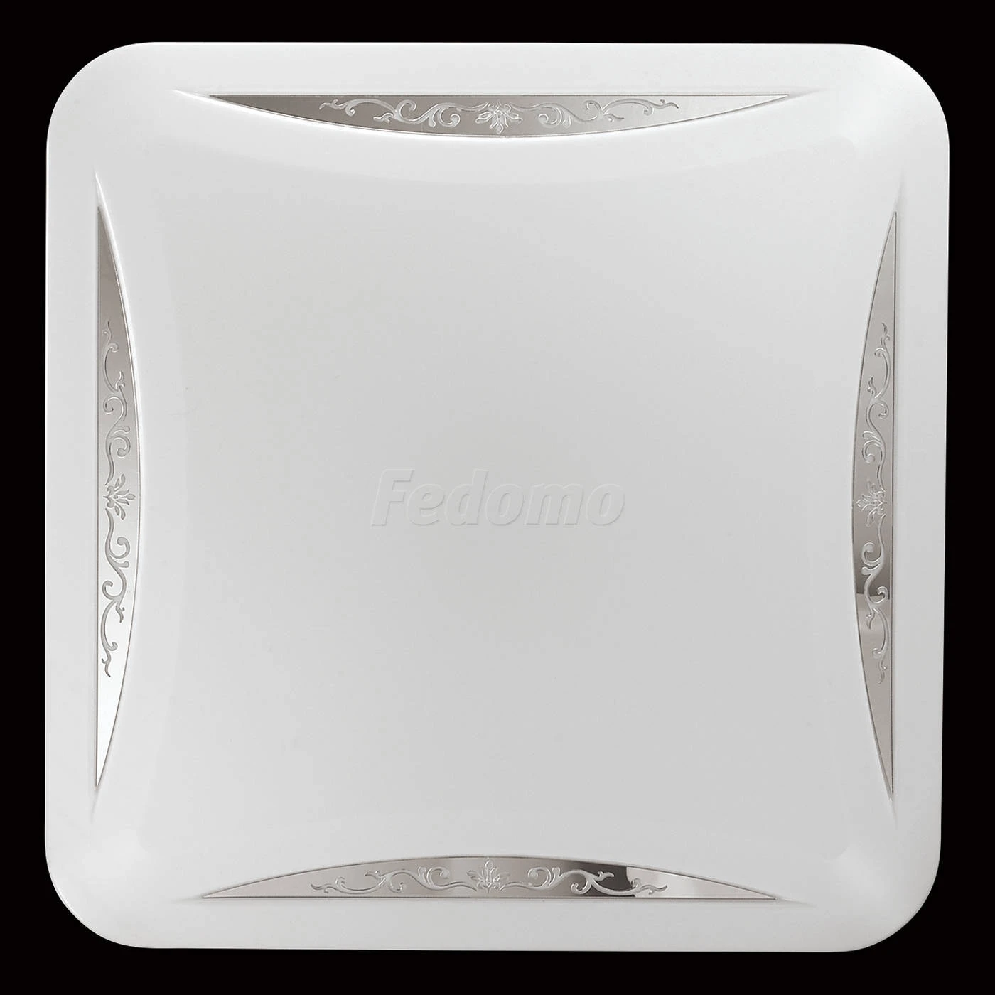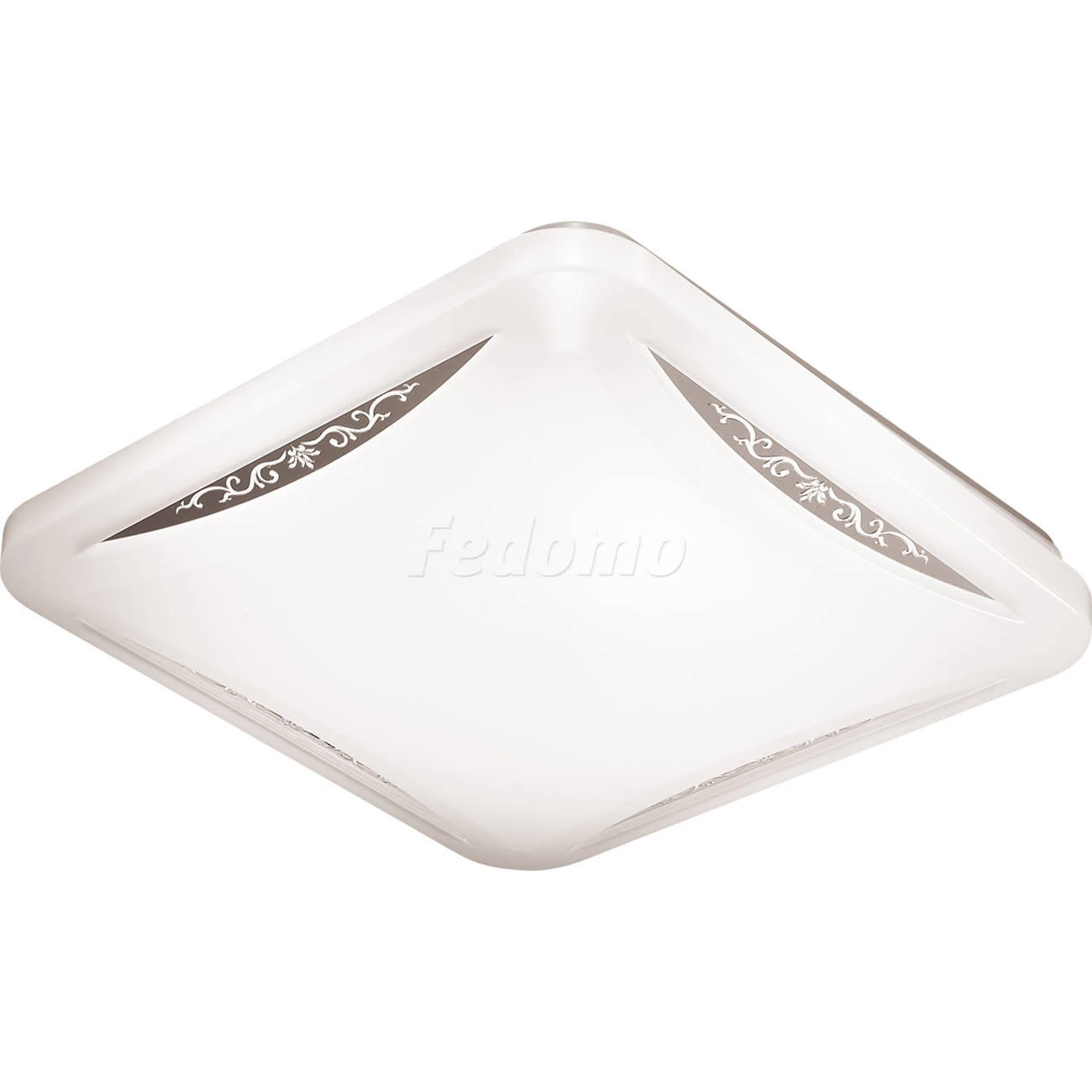 Материалы исполнения База - металл. Плафон - декорированный пластик. Цвет арматуры белый. Плафон в цвете: хром. Особенность: заменяемый LED модуль. Декор вставки с узором, материал декора металл, цвет хром. Светильник 2055/EL серии KRONA cостоит из металлического основания (базы) и пластикового рассевателя. Материал рассеивателя - высококачественный акрил белого матового цвета, обеспечивающий светильнику равномерное рассеивание и хорошее светопропускание. Форма плафона: квадратная, декорирована резными вставками из металла цвета хром. Степень защиты IP43 позволяет использовать светильник в определенных зонах влажных помещений. В комплект входит заменяемый LED модуль с линзами, мощностью 72Вт, которая соответствует лампе накаливания 520Вт. А также пульт ДУ, с помощью которого осуществляется плавное изменение цветовой температуры 3000-6500К, изменение яркости, переход в режим переключения холодного/белого/теплого/ночного света. Наименование 2055/EL SN 044 св-к KRONA пластик LED 72Вт 3000-6500K 530х530 IP43 пульт ДУ.