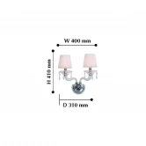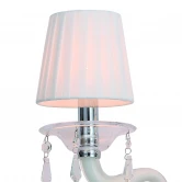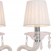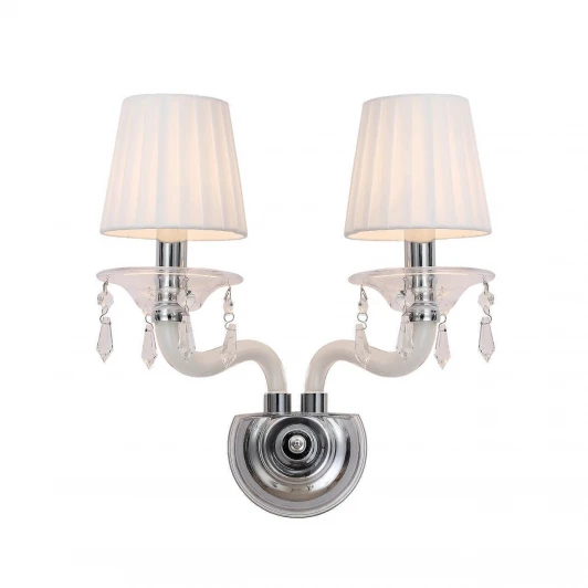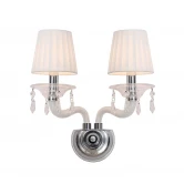 Лампы 2*E14*40W, excluded. Материал и цвет арматуры металл, цвет хром. Плафон белая ткань. Цвет хрусталя прозрачный. Декор прозрачное выдувное стекло, белое выдувное стекло, прозрачный хрусталь.