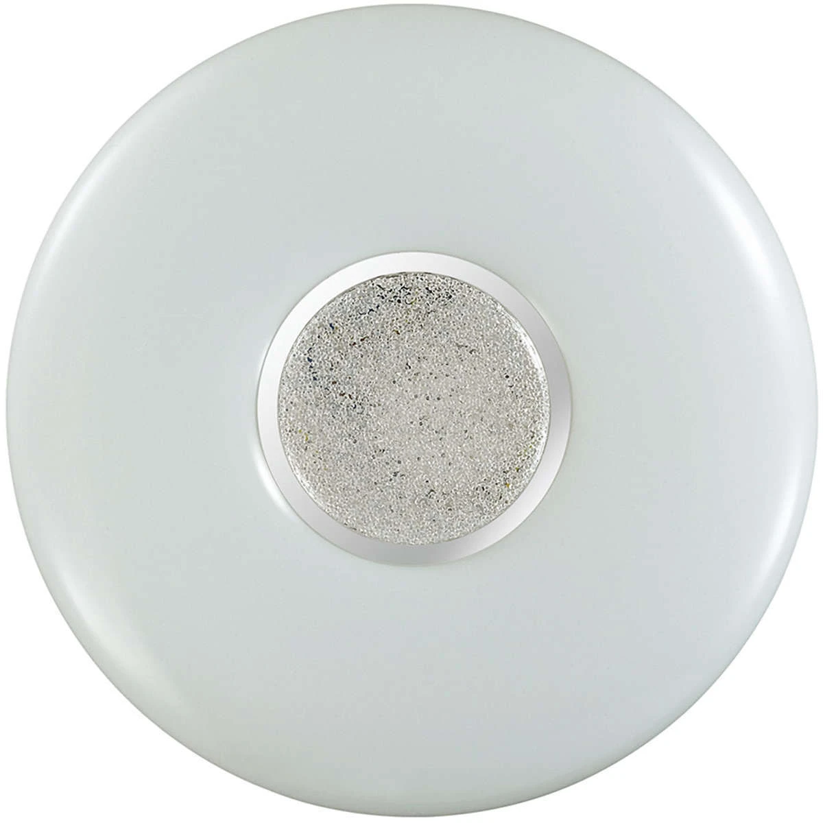 Материалы исполнения База - металл. Плафон - декорированный пластик. Цвет арматуры белый. Плафон в цвете: хром. Особенность: заменяемый LED модуль, кант цвета хром. Декор центральная вставка с пластиковой крошкой и эффектом переливания, материал декора пластик, цвет прозрачный. Светильник 2074/DL серии LAZANA cостоит из металлического основания (базы) и пластикового рассевателя. Материал рассеивателя - высококачественный акрил белого матового цвета, обеспечивающий светильнику равномерное рассеивание и хорошее светопропускание. Форма плафона: круглая, декорирована центральным кантом цвета хром и вставкой с пластиковой крошкой, которая придает включенному светильнику красивый эффект переливания. Степень защиты IP43 позволяет использовать светильник в определенных зонах влажных помещений. В комплект входит заменяемый LED модуль с линзами, мощностью 48Вт, которая соответствует лампе накаливания 350Вт. А также пульт ДУ, с помощью которого осуществляется плавное изменение цветовой температуры 3000-6500К, изменение яркости, переход в режим переключения холодного/белого/теплого/ночного света. Наименование 2074/DL SN 014 св-к LAZANA пластик LED 48Вт 3000-6500К D410 IP43 пульт ДУ.
