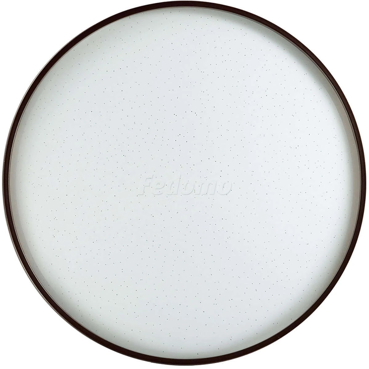 Материалы исполнения База - металл. Плафон - декорированный пластик. Цвет арматуры белый. Плафон в цвете: коричневый. Особенность: заменяемый LED модуль. Декор обод, материал декора пластик, цвет коричневый. Светильник 2075/DL серии GETA COFFEE cостоит из металлического основания (базы) и пластикового рассевателя. Материал рассеивателя - высококачественный акрил белого цвета с глянцевой поверхностью, обеспечивающий светильнику равномерное рассеивание и хорошее светопропускание. Форма плафона: круглая, декорирована коричневым ободом из пластика и рисунком в виде прозрачных точек, которые придают включенному светильнику красивый эффект "звездного мерцания" и переливания. Степень защиты IP43 позволяет использовать светильник в определенных зонах влажных помещений. В комплект входит заменяемый LED модуль с линзами, мощностью 48Вт, которая соответствует лампе накаливания 350Вт. А также пульт ДУ, с помощью которого осуществляется плавное изменение цветовой температуры 3000-6500К, изменение яркости, переход в режим переключения холодного/белого/теплого/ночного света. Наименование 2075/DL SN 026 св-к GETA COFFEE пластик LED 48Вт 3000-6500К D390 IP43 пульт ДУ.