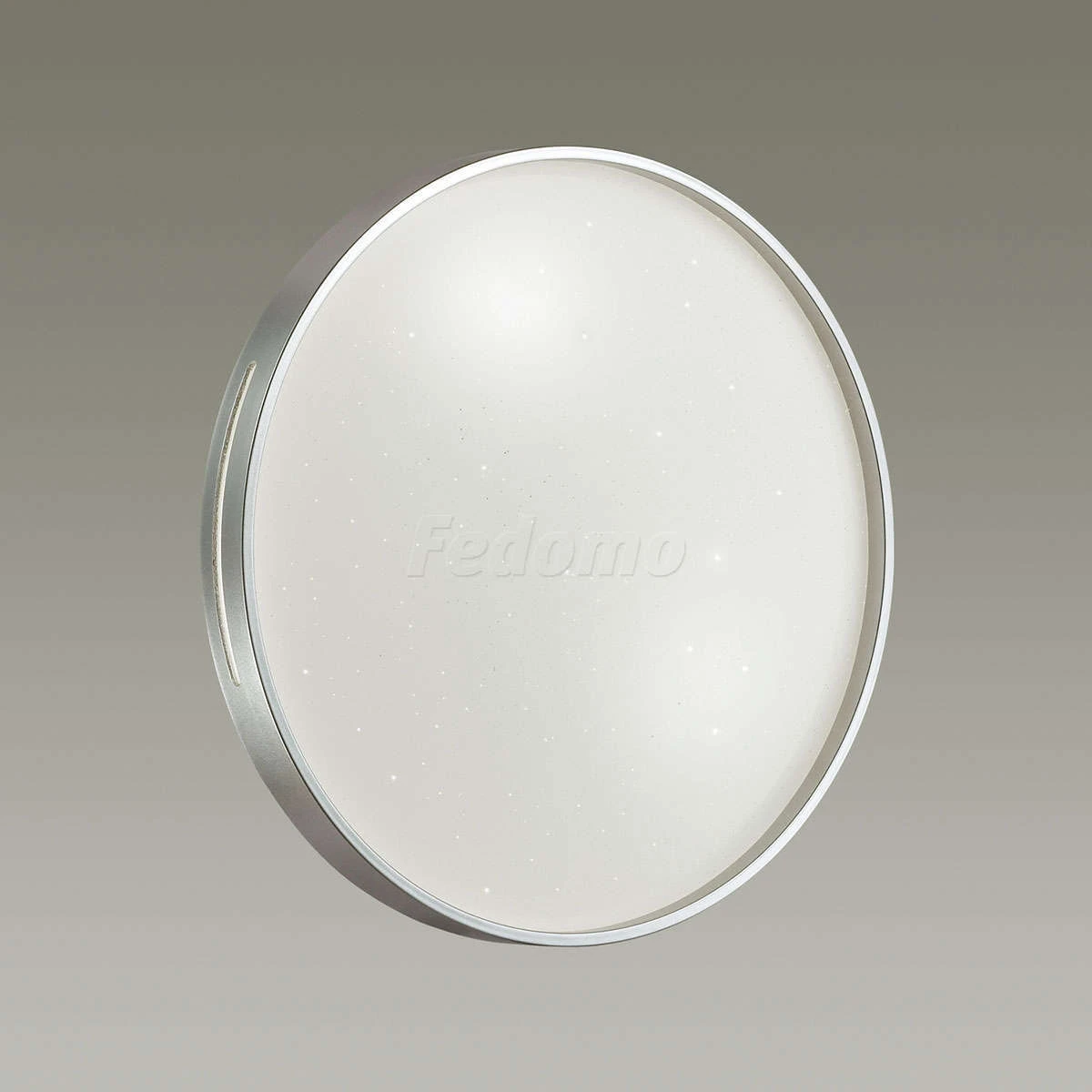 Материалы исполнения База - металл. Плафон - декорированный пластик. Цвет арматуры белый. Плафон в цвете: серебро. Особенность: заменяемый LED модуль. Декор обод, материал декора пластик, цвет серебро. Светильник 2076/DL серии GETA SILVER cостоит из металлического основания (базы) и пластикового рассевателя. Материал рассеивателя - высококачественный акрил белого цвета с глянцевой поверхностью, обеспечивающий светильнику равномерное рассеивание и хорошее светопропускание. Форма плафона: круглая, декорирована ободом из пластика серебристого цвета и рисунком в виде прозрачных точек, которые придают включенному светильнику красивый эффект "звездного мерцания" и переливания. Степень защиты IP43 позволяет использовать светильник в определенных зонах влажных помещений. В комплект входит заменяемый LED модуль с линзами, мощностью 48Вт, которая соответствует лампе накаливания 350Вт. А также пульт ДУ, с помощью которого осуществляется плавное изменение цветовой температуры 3000-6500К, изменение яркости, переход в режим переключения холодного/белого/теплого/ночного света. Наименование 2076/DL SN 027 св-к GETA SILVER пластик LED 48Вт 3000-6500К D390 IP43 пульт ДУ.