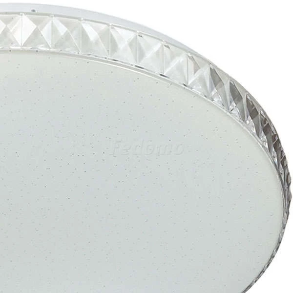 Материалы исполнения База - металл. Плафон - декорированный пластик. Цвет арматуры белый. Плафон в цвете: прозрачный. Особенность: заменяемый LED модуль. Декор рельефный обод с эффектом переливания, материал декора пластик, цвет прозрачный. Светильник 2077/DL серии DINA cостоит из металлического основания (базы) и пластикового рассевателя. Материал рассеивателя - высококачественный акрил белого цвета с глянцевой поверхностью, обеспечивающий светильнику равномерное рассеивание и хорошее светопропускание. Форма плафона: круглая, декорирована прозрачным рельефным ободом и рисунком в виде прозрачных точек, которые придают включенному светильнику красивый эффект "звездного мерцания" и переливания. Степень защиты IP43 позволяет использовать светильник в определенных зонах влажных помещений. В комплект входит заменяемый LED модуль с линзами, мощностью 48Вт, которая соответствует лампе накаливания 350Вт. А также пульт ДУ, с помощью которого осуществляется плавное изменение цветовой температуры 3000-6500К, изменение яркости, переход в режим переключения холодного/белого/теплого/ночного света. Наименование 2077/DL SN 024 св-к DINA пластик LED 48Вт 3000-6500К D390 IP43 пульт ДУ.