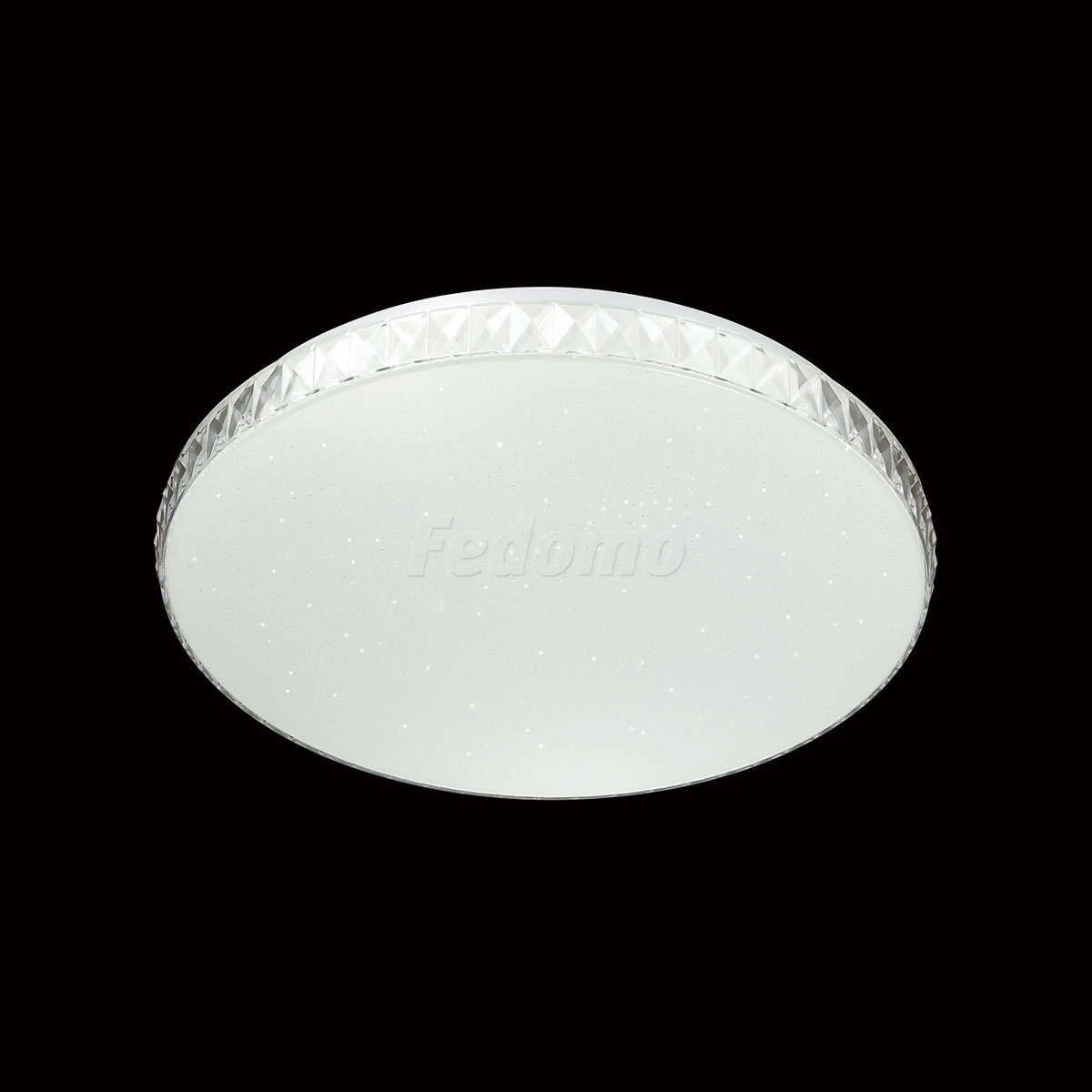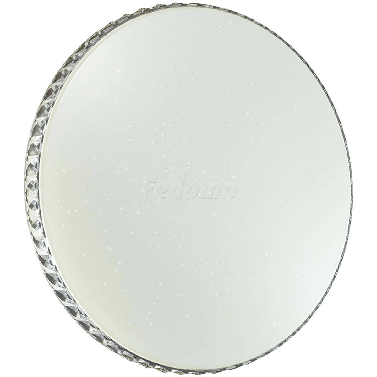Материалы исполнения База - металл. Плафон - декорированный пластик. Цвет арматуры белый. Плафон в цвете: прозрачный. Особенность: заменяемый LED модуль. Декор рельефный обод с эффектом переливания, материал декора пластик, цвет прозрачный. Светильник 2077/EL серии DINA cостоит из металлического основания (базы) и пластикового рассевателя. Материал рассеивателя - высококачественный акрил белого цвета с глянцевой поверхностью, обеспечивающий светильнику равномерное рассеивание и хорошее светопропускание. Форма плафона: круглая, декорирована прозрачным рельефным ободом и рисунком в виде прозрачных точек, которые придают включенному светильнику красивый эффект "звездного мерцания" и переливания. Степень защиты IP43 позволяет использовать светильник в определенных зонах влажных помещений. В комплект входит заменяемый LED модуль с линзами, мощностью 72Вт, которая соответствует лампе накаливания 520Вт. А также пульт ДУ, с помощью которого осуществляется плавное изменение цветовой температуры 3000-6500К, изменение яркости, переход в режим переключения холодного/белого/теплого/ночного света. Наименование 2077/EL SN 024 св-к DINA пластик LED 72Вт 3000-6500К D500 IP43 пульт ДУ.