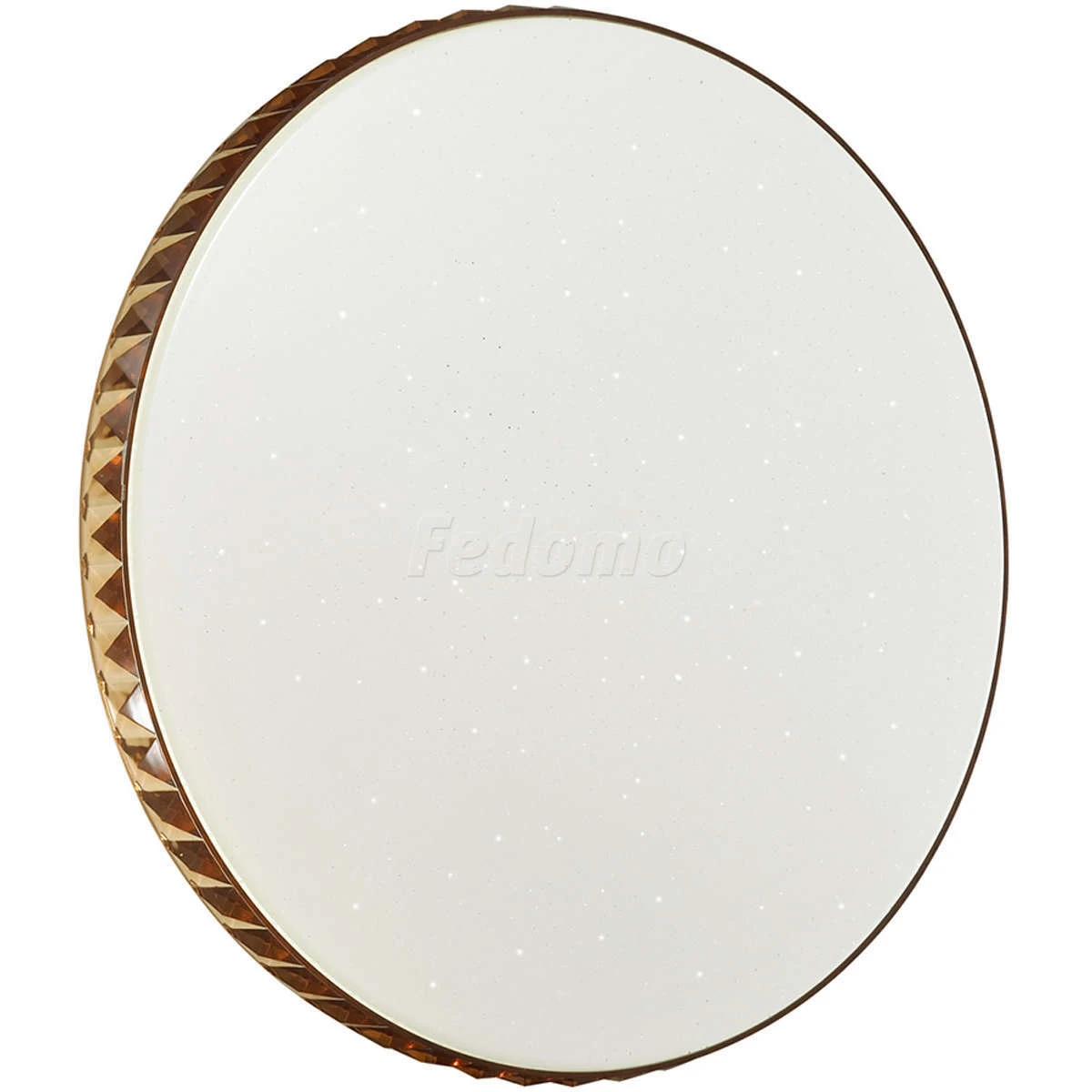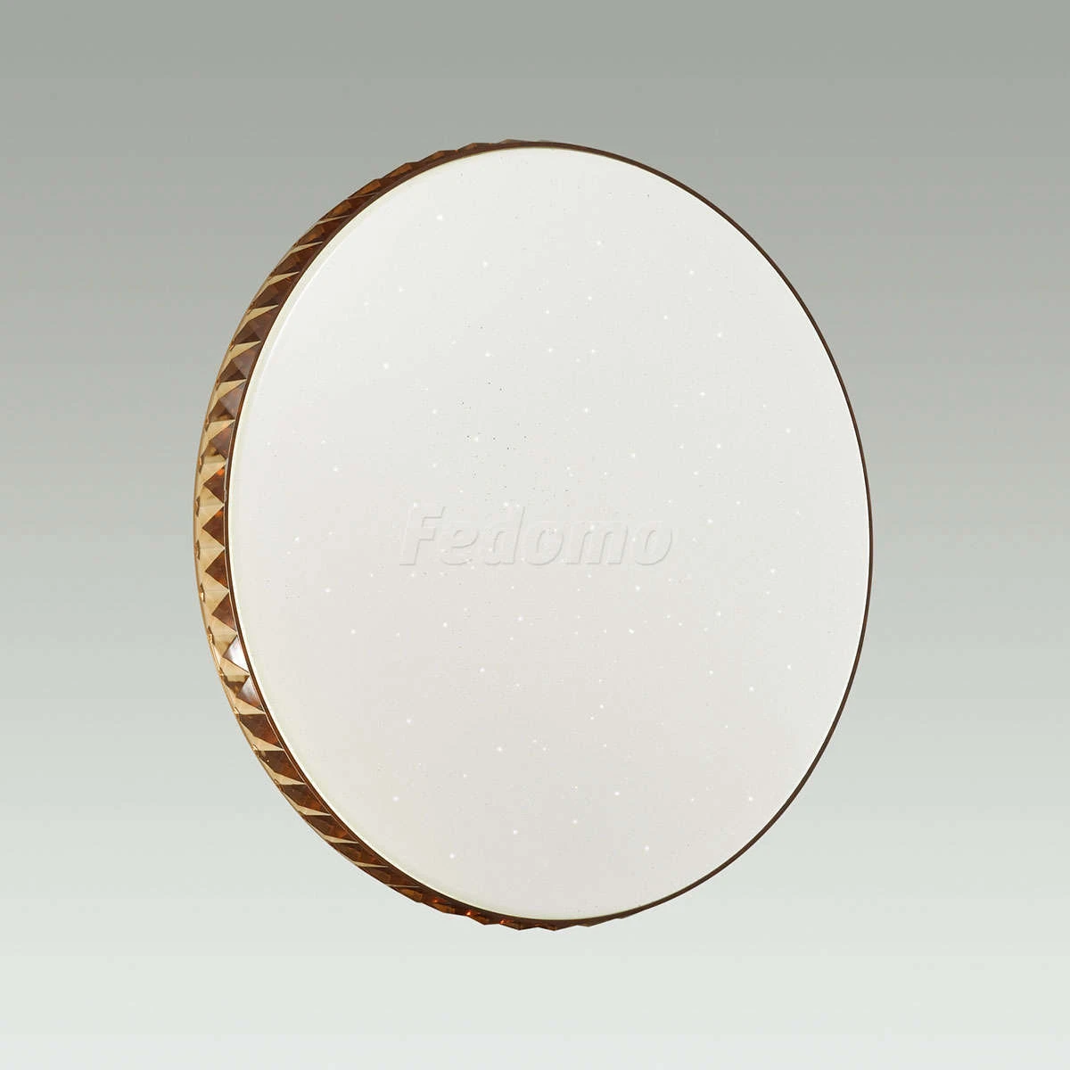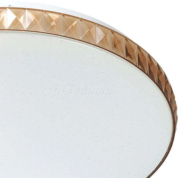 Материалы исполнения База - металл. Плафон - декорированный пластик. Цвет арматуры белый. Плафон в цвете: желтый. Особенность: заменяемый LED модуль. Декор рельефный обод с эффектом переливания, материал декора пластик, цвет желтый. Светильник 2078/DL серии DINA AMBER cостоит из металлического основания (базы) и пластикового рассевателя. Материал рассеивателя - высококачественный акрил белого цвета с глянцевой поверхностью, обеспечивающий светильнику равномерное рассеивание и хорошее светопропускание. Форма плафона: круглая, декорирована рельефным ободом янтарного цвета и рисунком в виде прозрачных точек, которые придают включенному светильнику красивый эффект "звездного мерцания" и переливания. Степень защиты IP43 позволяет использовать светильник в определенных зонах влажных помещений. В комплект входит заменяемый LED модуль с линзами, мощностью 48Вт, которая соответствует лампе накаливания 350Вт. А также пульт ДУ, с помощью которого осуществляется плавное изменение цветовой температуры 3000-6500К, изменение яркости, переход в режим переключения холодного/белого/теплого/ночного света. Наименование 2078/DL SN 025 св-к DINA AMBER пластик LED 48Вт 3000-6500К D390 IP43 пульт ДУ.