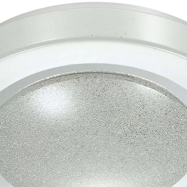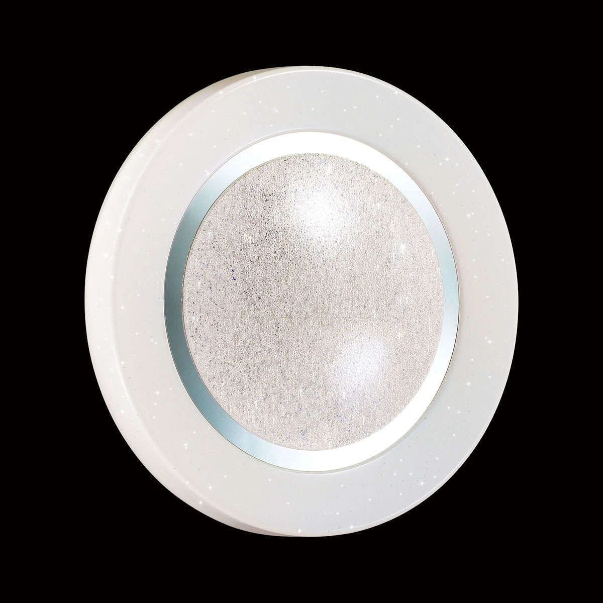Материалы исполнения База - металл. Плафон - декорированный пластик. Цвет арматуры белый. Плафон в цвете: прозрачный. Особенность: заменяемый LED модуль, кант цвета хром. Декор центральная вставка с пластиковой крошкой и эффектом переливания, материал декора пластик, цвет прозрачный. Светильник 2079/СL серии PINOLA cостоит из металлического основания (базы) и пластикового рассевателя. Материал рассеивателя - высококачественный акрил белого цвета с глянцевой поверхностью, обеспечивающий светильнику равномерное рассеивание и хорошее светопропускание. Форма плафона: круглая, декорирована кантом цвета хром, пластиковой крошкой, рисунком в виде прозрачных точек, которые придают включенному светильнику красивый эффект "звездного мерцания" и переливания. Степень защиты IP43 позволяет использовать светильник в определенных зонах влажных помещений. В комплект входит заменяемый LED модуль с линзами, мощностью 28Вт, которая соответствует лампе накаливания 200Вт. Источник света имеет комфортную цветовую температуру 4000К (белый свет). Наименование 2079/CL SN 012 св-к PINOLA пластик LED 28Вт 4000К D330 IP43.