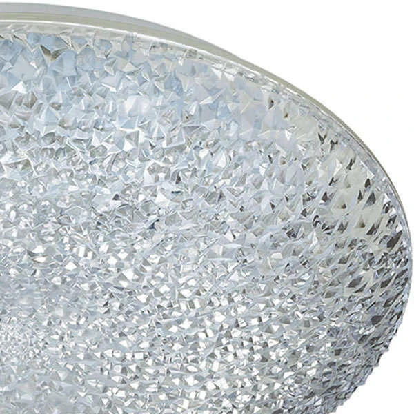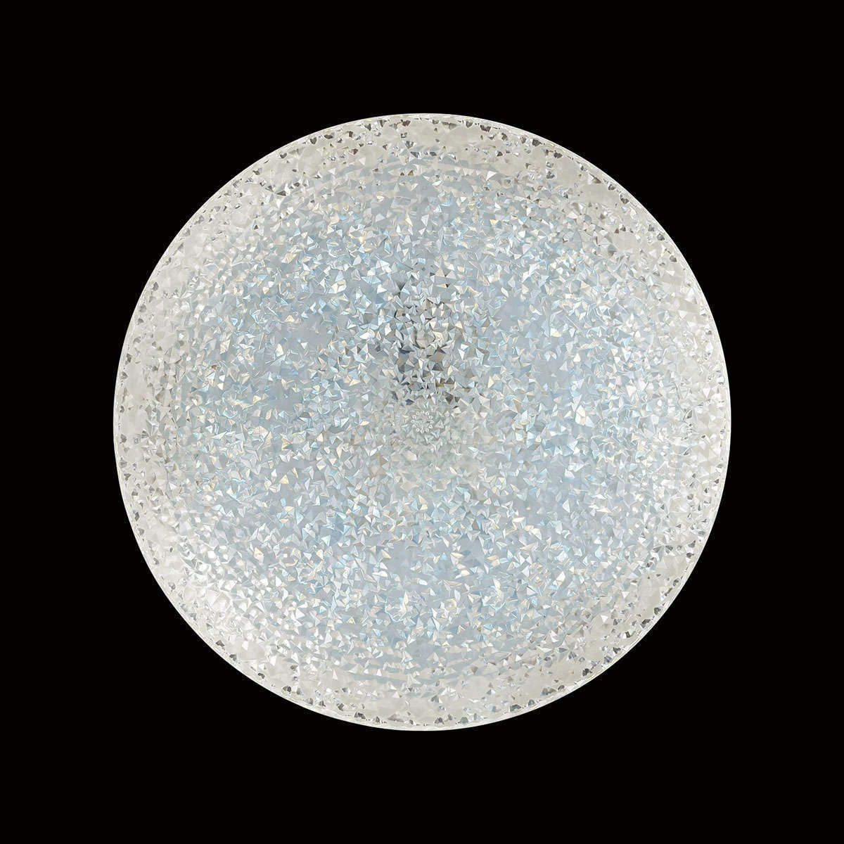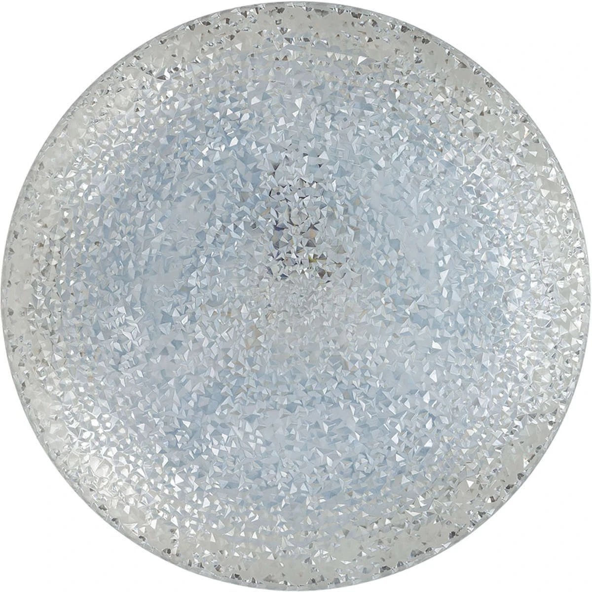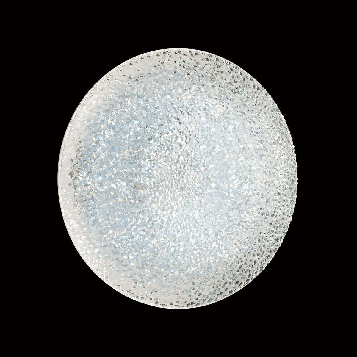 Материалы исполнения База - металл. Плафон - декорированный пластик. Цвет арматуры белый. Плафон в цвете: прозрачный. Особенность: заменяемый LED модуль. Декор рельефная структура "под хрусталь", материал декора пластик, цвет прозрачный. Светильник 2081/DL серии GLORI cостоит из металлического основания (базы) и пластикового рассевателя. Материал рассеивателя - высококачественный акрил с глянцевой поверхностью, обеспечивающий светильнику равномерное рассеивание и хорошее светопропускание. Форма плафона: круглая, декорирована рельефной структурой "под хрусталь", которая придает включенному светильнику красивый эффект переливания. Степень защиты IP43 позволяет использовать светильник в определенных зонах влажных помещений. В комплект входит заменяемый LED модуль с линзами, мощностью 48Вт, которая соответствует лампе накаливания 350Вт. А также пульт ДУ, с помощью которого осуществляется плавное изменение цветовой температуры 3000-6500К, изменение яркости, переход в режим переключения холодного/белого/теплого/ночного света. Наименование 2081/DL SN 011 св-к GLORI пластик LED 48Вт 3000-6500К D420 IP43 пульт ДУ.