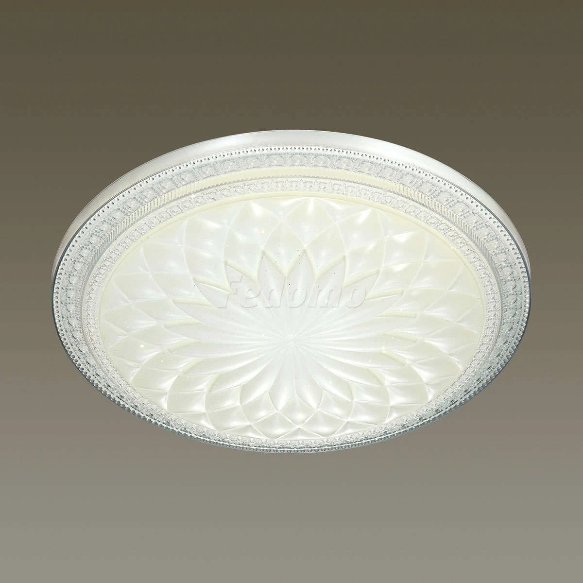 Материалы исполнения База - металл. Плафон - декорированный пластик. Цвет арматуры белый. Плафон в цвете: прозрачный. Особенность: заменяемый LED модуль. Декор рельефный обод с эффектом переливания, материал декора пластик, цвет прозрачный. Светильник 2082/EL серии DEGIRA cостоит из металлического основания (базы) и пластикового рассевателя. Материал рассеивателя - высококачественный акрил белого матового цвета, обеспечивающий светильнику равномерное рассеивание и хорошее светопропускание. Форма плафона: круглая, в виде рельефного, составного орнамента, который декорирован прозрачными точками, придающими включенному светильнику красивый эффект "звездного мерцания" и переливания. Степень защиты IP43 позволяет использовать светильник в определенных зонах влажных помещений. В комплект входит заменяемый LED модуль с линзами, мощностью 72Вт, которая соответствует лампе накаливания 520Вт. А также пульт ДУ, с помощью которого осуществляется плавное изменение цветовой температуры 3000-6500К, изменение яркости, переход в режим переключения холодного/белого/теплого/ночного света. Наименование 2082/EL SN 023 св-к DEGIRA пластик LED 72Вт 3000-6500К D500 IP43 пульт ДУ.