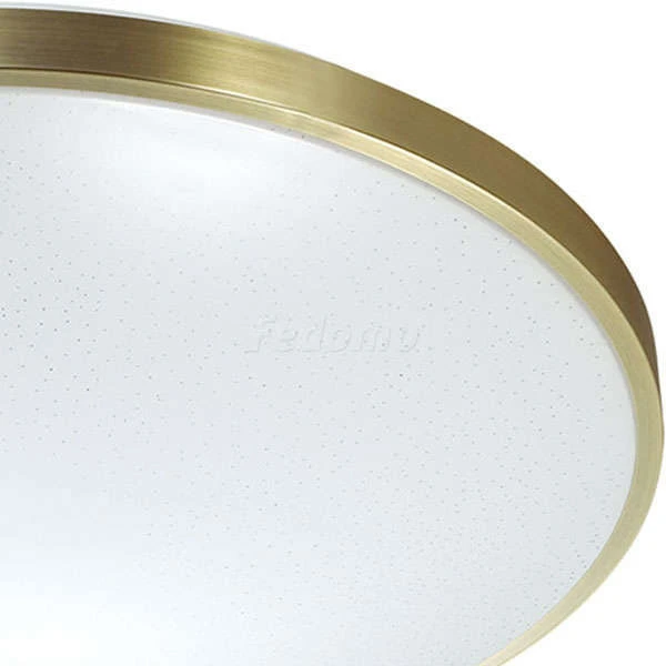 Материалы исполнения База - металл. Плафон - декорированный пластик. Цвет арматуры белый. Плафон в цвете: бронзовый. Особенность: заменяемый LED модуль. Декор обод, материал декора металл, цвет бронзовый. Светильник 2089/DL серии LOTA BRONZE cостоит из металлического основания (базы) и пластикового рассевателя. Материал рассеивателя - высококачественный акрил белого цвета с глянцевой поверхностью, обеспечивающий светильнику равномерное рассеивание и хорошее светопропускание. Форма плафона: круглая, декорирована ободом из металла бронзового цвета и рисунком в виде прозрачных точек, которые придают включенному светильнику красивый эффект "звездного мерцания" и переливания. Степень защиты IP43 позволяет использовать светильник в определенных зонах влажных помещений. В комплект входит заменяемый LED модуль с линзами, мощностью 48Вт, которая соответствует лампе накаливания 350Вт. А также пульт ДУ, с помощью которого осуществляется плавное изменение цветовой температуры 3000-6500К, изменение яркости, переход в режим переключения холодного/белого/теплого/ночного света. Наименование 2089/DL SN 029 св-к LOTA BRONZE пластик LED 48Вт 3000-6500К D440 IP43 пульт ДУ.
