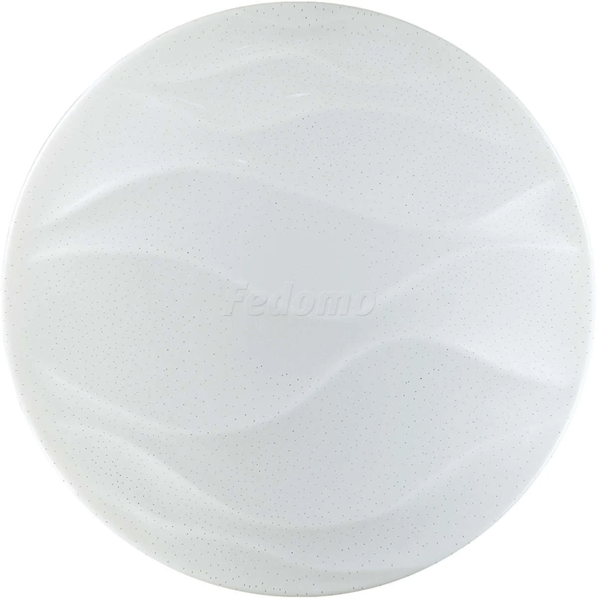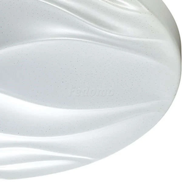 Материалы исполнения База - металл. Плафон - декорированный пластик. Цвет арматуры белый. Плафон в цвете: белый. Особенность: заменяемый LED модуль. Декор рельеф в виде волны, материал декора пластик, цвет белый. Светильник 2090/EL серии ERICA cостоит из металлического основания (базы) и пластикового рассевателя. Материал рассеивателя - высококачественный акрил белого матового цвета, обеспечивающий светильнику равномерное рассеивание и хорошее светопропускание. Форма плафона: круглая, с рельефным орнаментом в виде волны, декорирована прозрачными точками, придающими включенному светильнику красивый эффект "звездного мерцания" и переливания. Степень защиты IP43 позволяет использовать светильник в определенных зонах влажных помещений. В комплект входит заменяемый LED модуль с линзами, мощностью 72Вт, которая соответствует лампе накаливания 520Вт. А также пульт ДУ, с помощью которого осуществляется плавное изменение цветовой температуры 3000-6500К, изменение яркости, переход в режим переключения холодного/белого/теплого/ночного света. Наименование 2090/EL SN 016 св-к ERICA пластик LED 72Вт 3000-6500К D540 IP43 пульт ДУ.