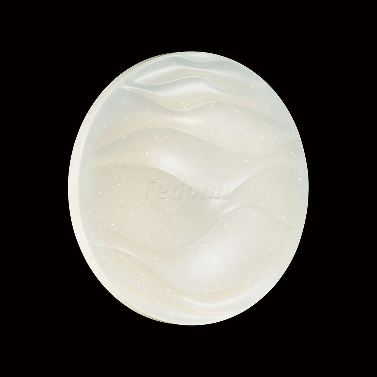 Материалы исполнения База - металл. Плафон - декорированный пластик. Цвет арматуры белый. Плафон в цвете: белый. Декор рельеф в виде волны, материал декора пластик, цвет белый. Светильник 2090/ML серии ERICA cостоит из металлического основания (базы) и пластикового рассевателя. Материал рассеивателя - высококачественный акрил белого матового цвета, обеспечивающий светильнику равномерное рассеивание и хорошее светопропускание. Форма плафона: круглая, с рельефным орнаментом в виде волны, декорирована прозрачными точками, придающими включенному светильнику красивый эффект "звездного мерцания" и переливания. Степень защиты IP43 позволяет использовать светильник в определенных зонах влажных помещений. В комплект входит LED модуль с линзами, мощностью 160Вт, которая соответствует лампе накаливания 1150Вт. А также пульт ДУ, с помощью которого осуществляется плавное изменение цветовой температуры 3000-6500К, изменение яркости, переход в режим переключения холодного/белого/теплого/ночного света. Наименование 2090/ML SN 046 св-к ERICA пластик LED 160Вт 3000-6500К D760 IP43 пульт ДУ.