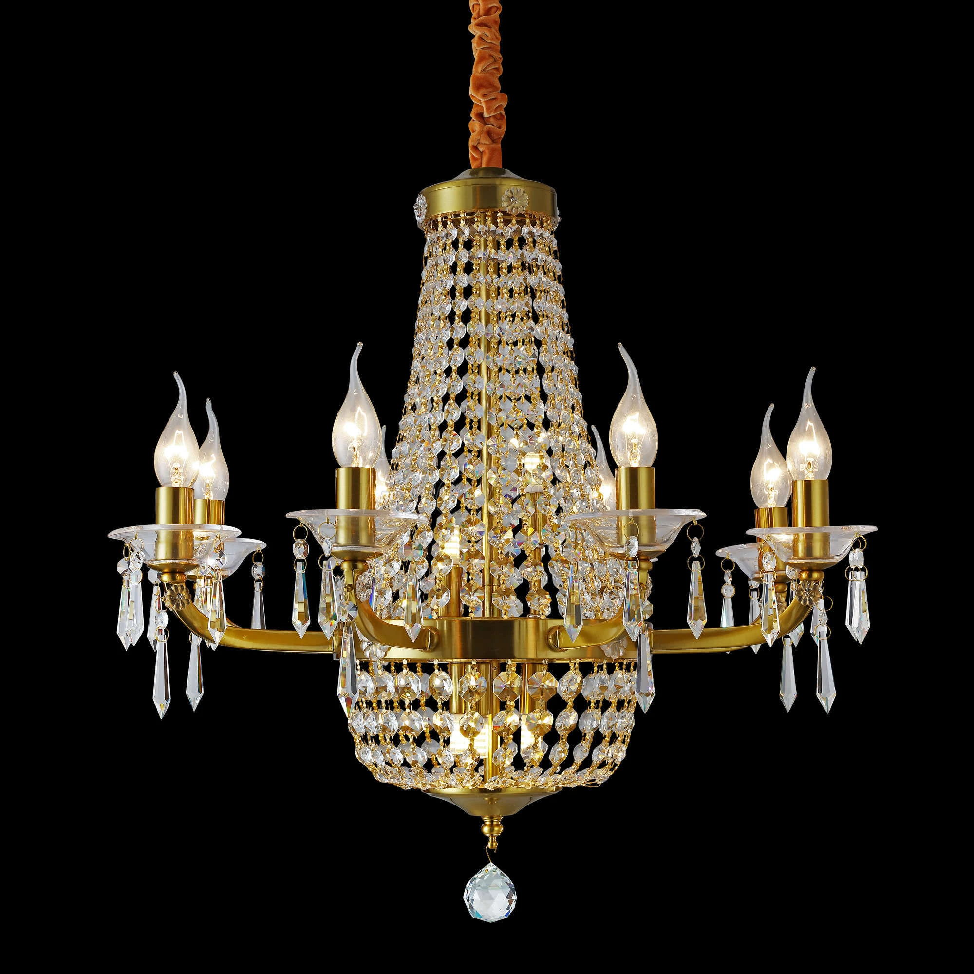 Люстра подвесная 2091-8P из серии GRANDE от компании Favourite регулируется по высоте и устанавливается на монтажную пластину. Классическая люстра в виде подсвечника украшена хрусталем и прекрасно подойдет в качестве источника основного света для гостиной, кафе, холла, оформленных в стиле арт-деко, барокко. Основной цвет модели - латунь, материал арматуры - металл, стекло. Модель оснащена цоколем E14,G9 (8xE14,5xG9), имеет 8,5 (13) лампочек с общей мощностью 520W и напряжением 220V. Габариты: диаметр - 630 мм. В комплекте есть лампочки. Лучшая цена и условия доставки на Favourite 2091-8P в интернет-магазине Fedomo.ru.
